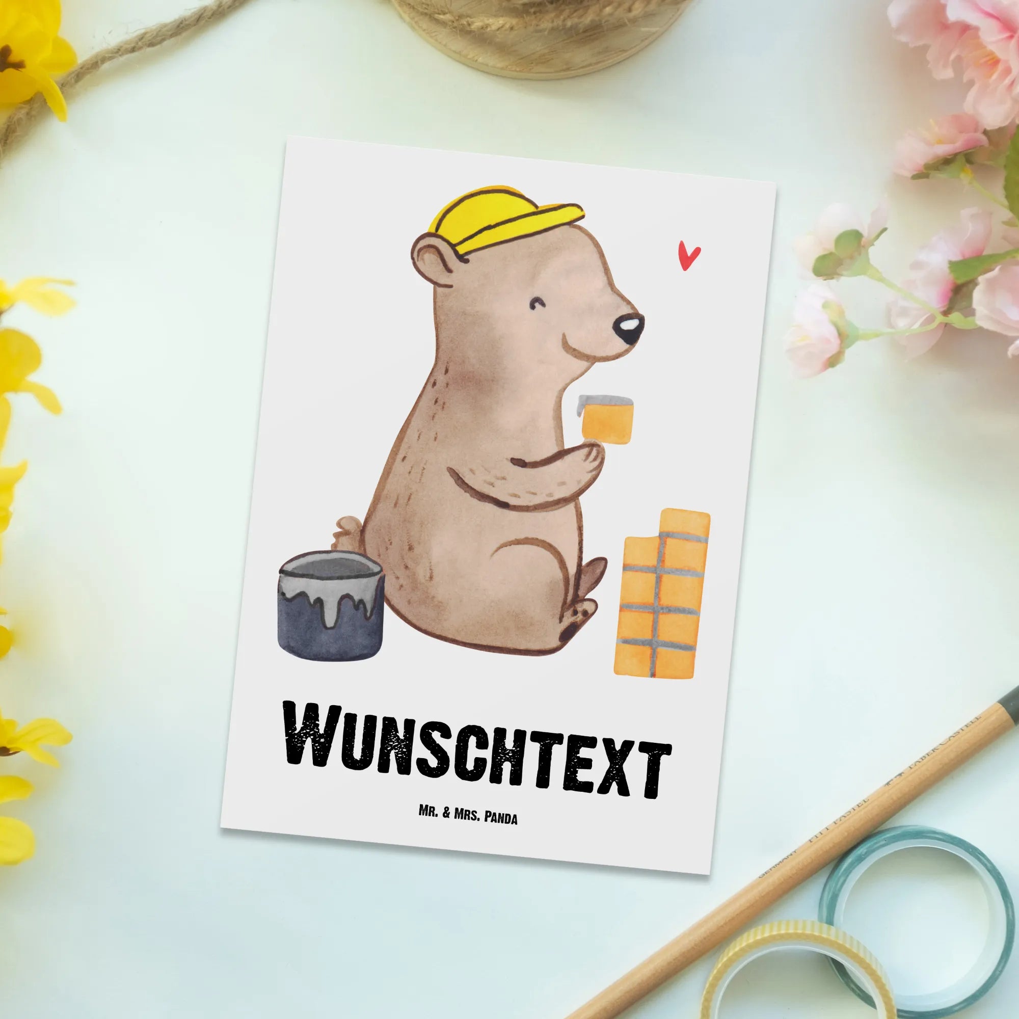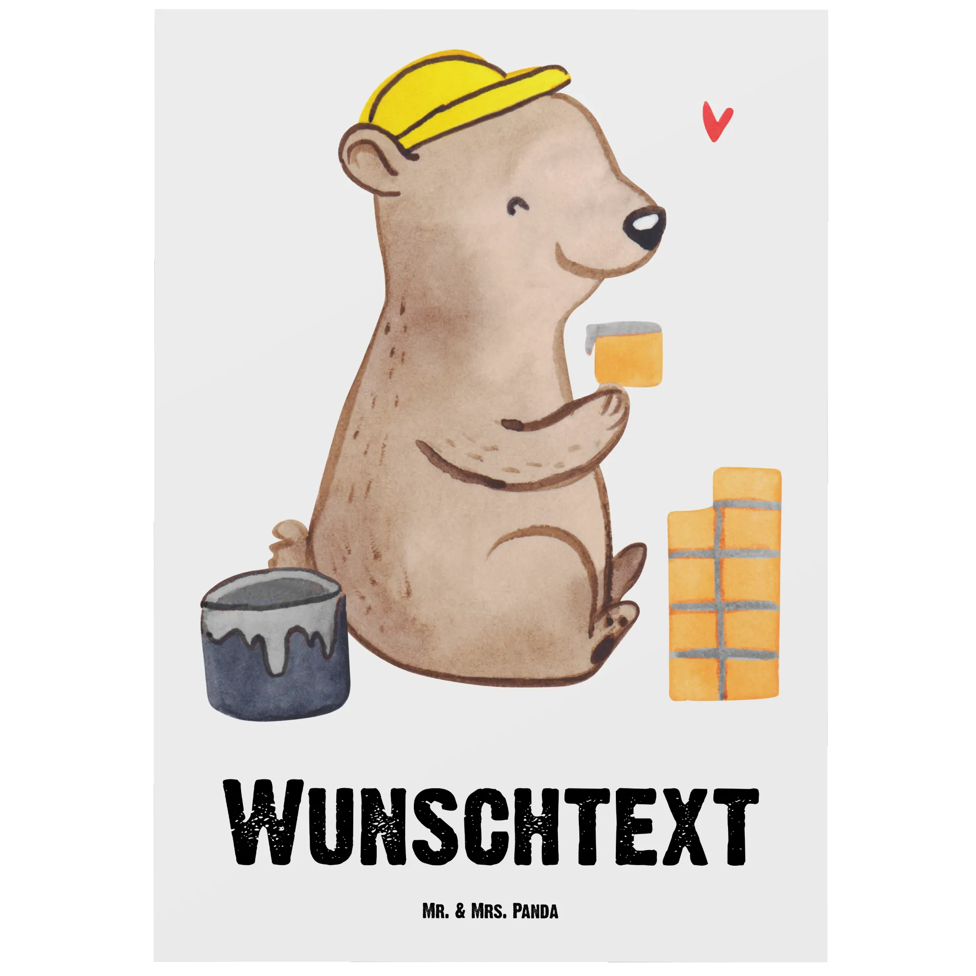 Perfekt für Maurer, Handwerker und alle, die mit diesen Berufen in Kontakt stehen. Mach es besonders und verschenke ein Stück Freude mit dieser einzigartigen Postkarte, die jeden Handwerker erkennt und schätzt. Die Kombination aus individueller Gestaltung und humorvollem Design sorgt dafür, dass dieses Geschenk in Erinnerung bleibt. Verschenke den besonderen Moment mit der Postkarte "Maurer mit Herz" von Mr. & Mrs. Panda.