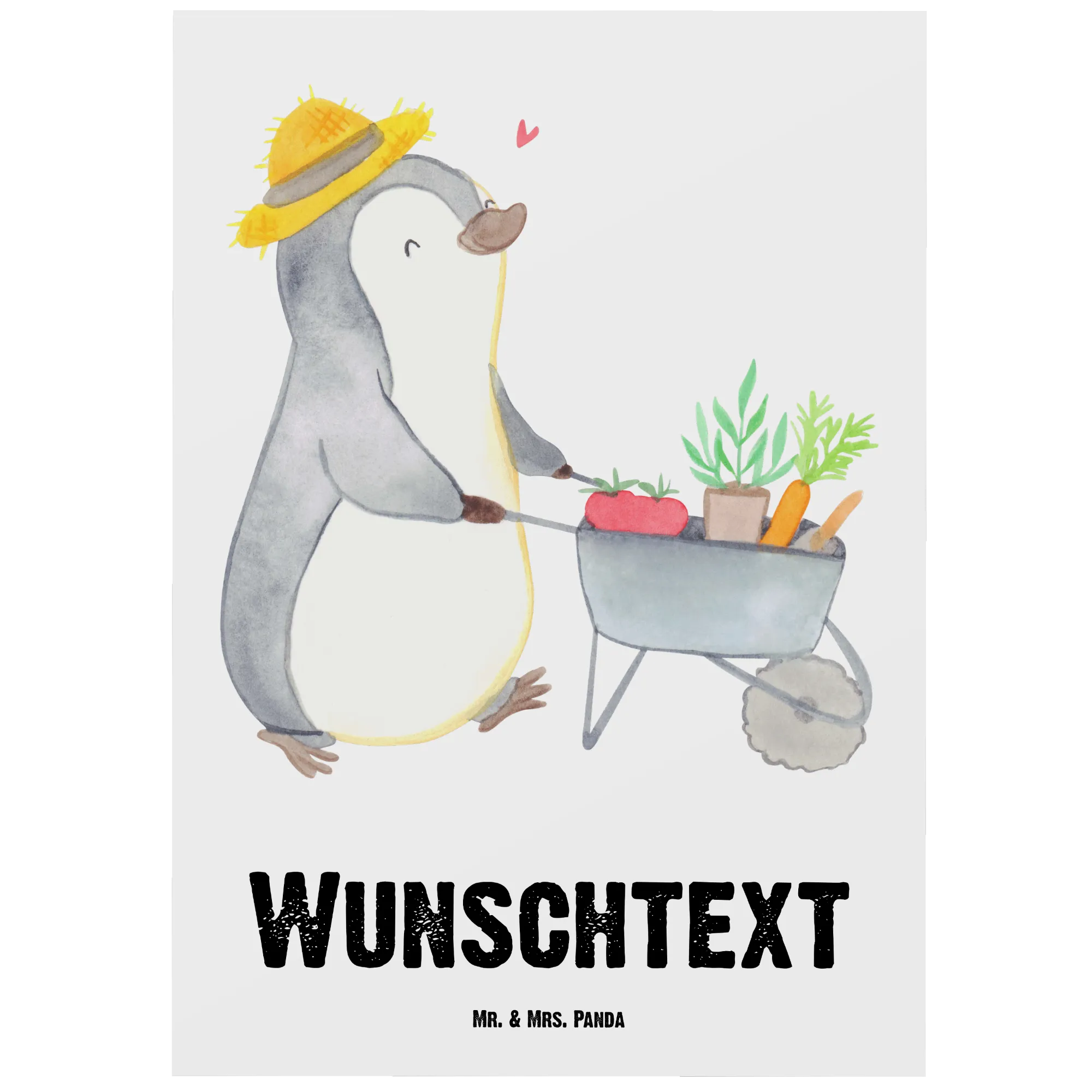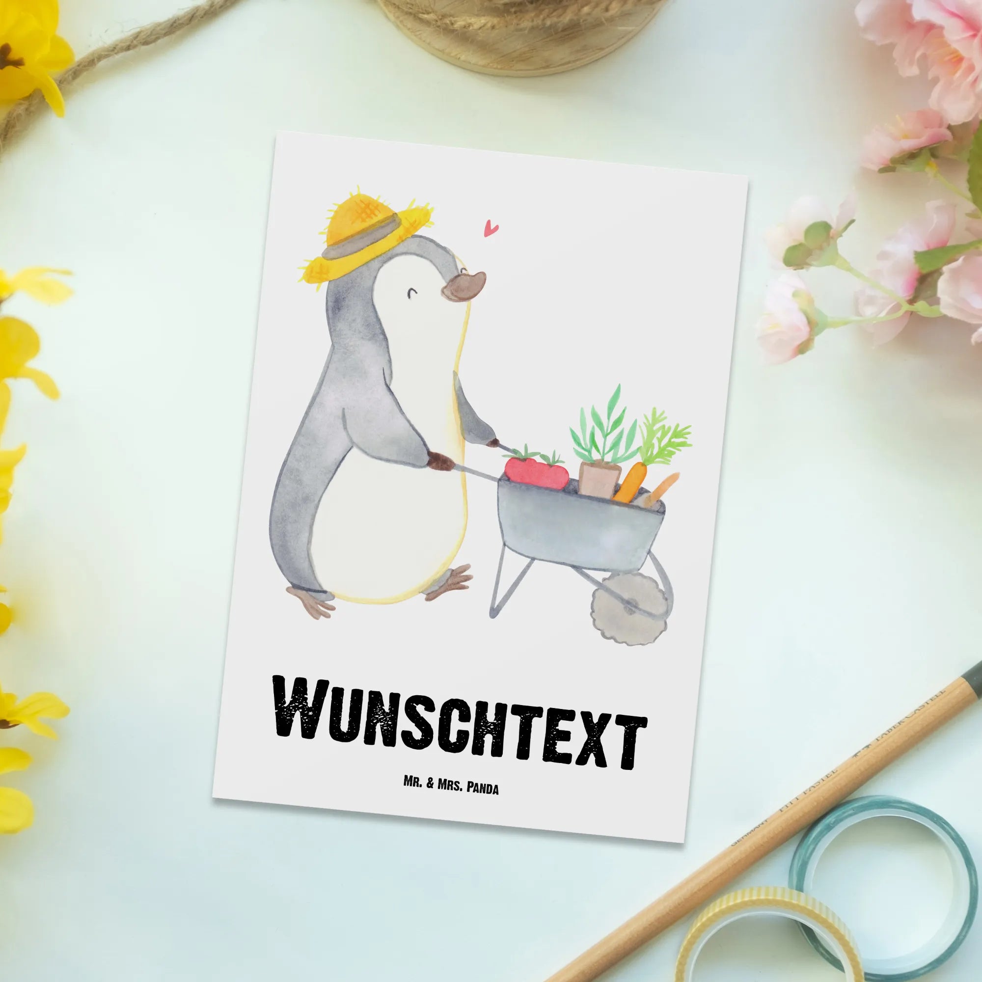 Personalisierte Postkarte Pinguin Gartenarbeit