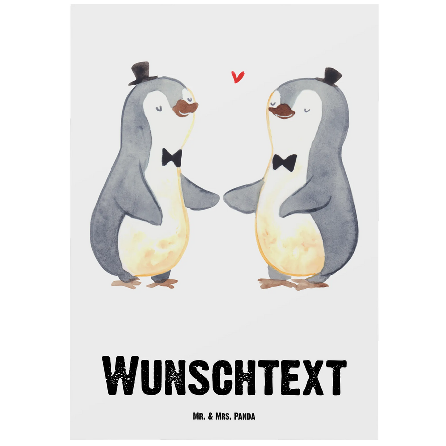 Du suchst nach dem perfekten Geschenk für ein Brautpaar? Dann ist die personalisierte Postkarte mit dem süßen Motiv "Pinguin Pärchen Gay Pride" aus der Hochzeit Kollektion von Mr. & Mrs. Panda genau das Richtige für dich! Diese einzigartige Postkarte zeigt zwei niedliche Pinguinmännchen, die stolz Händchen halten und gemeinsam ihre Liebe zelebrieren. Mit dem begleitenden Slogan "Wir lieben uns, egal was die Anderen sagen!" wird eine wundervolle Botschaft für Vielfalt und Toleranz übermittelt. Diese Postkarte ist nicht nur ein tolles Hochzeitsgeschenk, sondern eignet sich ebenso hervorragend für Verlobungsgeschenke oder als liebevolle Geste zum Jahrestag.