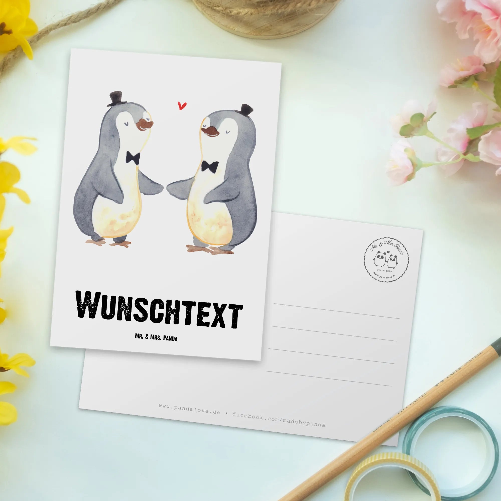 Personalisierte Postkarte Pinguin Pärchen Gay Pride
