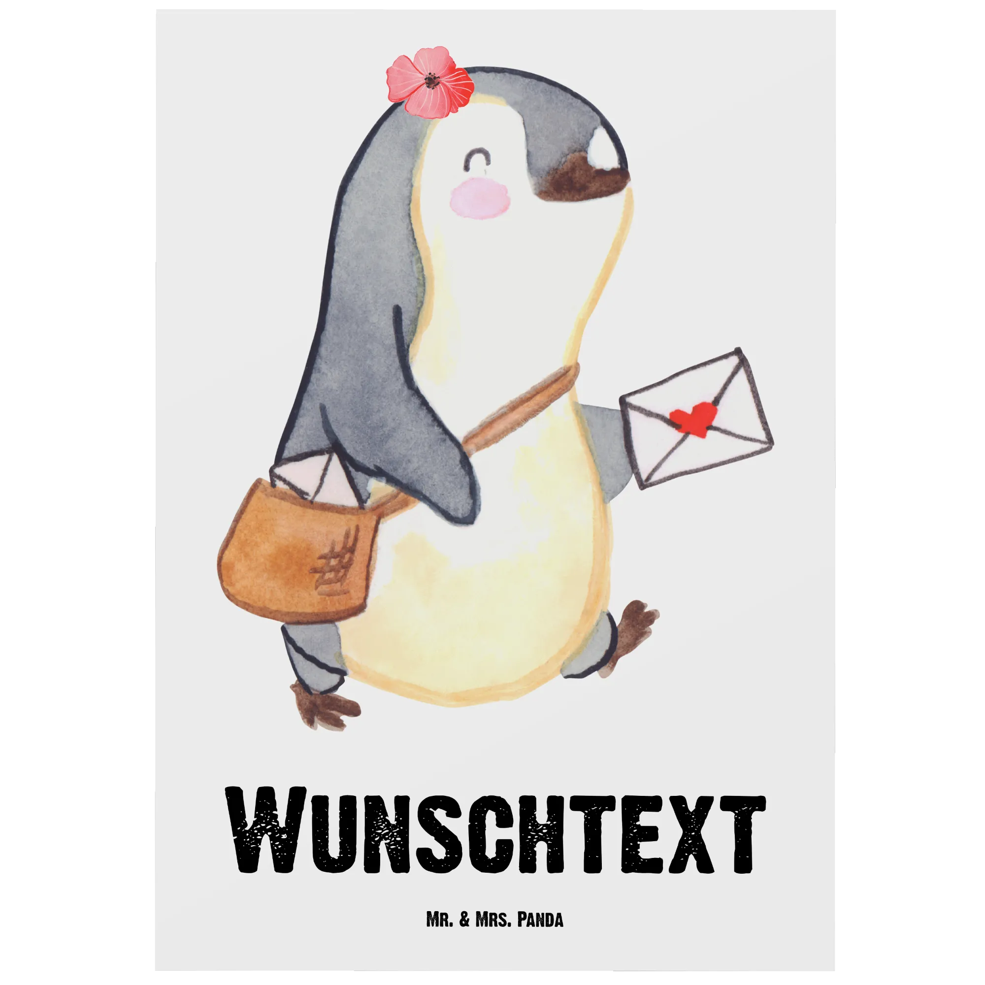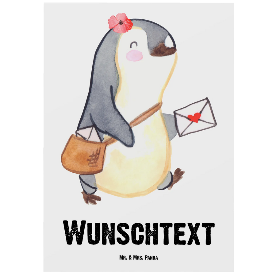 Personalisierte Postkarte „Postbotin mit Herz“ – die perfekte Mischung aus Herz, Humor und Persönlichkeit. Unsere niedliche Postbotin (ein liebevoll handgezeichneter Pinguin mit Posttasche) bringt eine Botschaft voller Wärme und Dankbarkeit direkt ins Herz. Ideal als Postkarte mit Namen, Grußkarte mit Wunschtext oder Geschenkkarte für besondere Anlässe.