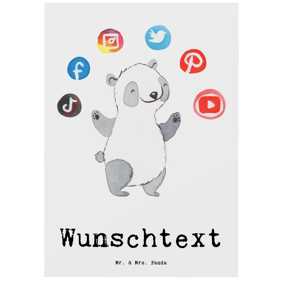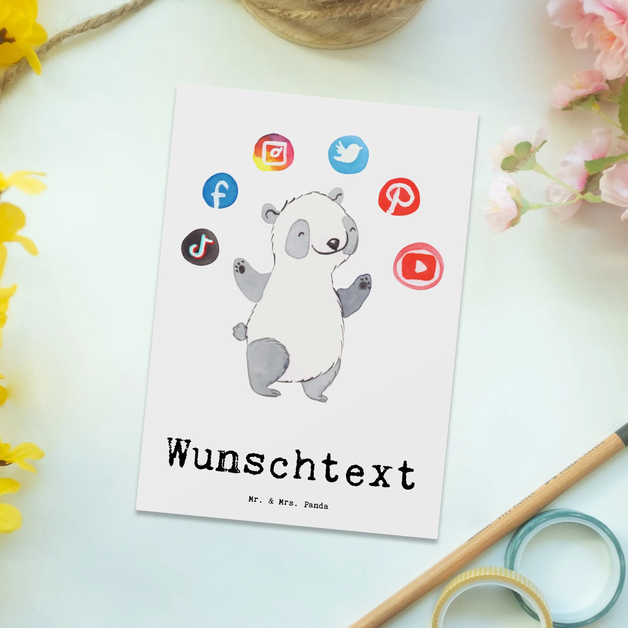 Die personalisierte Postkarte "Social Media Manager mit Herz" aus der kreativen Berufe Kollektion von Mr. & Mrs. Panda ist das perfekte Geschenk für alle, die im Social Media Bereich tätig sind. Mit diesem einzigartigen Design ziehst du alle Blicke auf dich und zeigst deinen Kollegen, wie sehr du ihren Job schätzt.