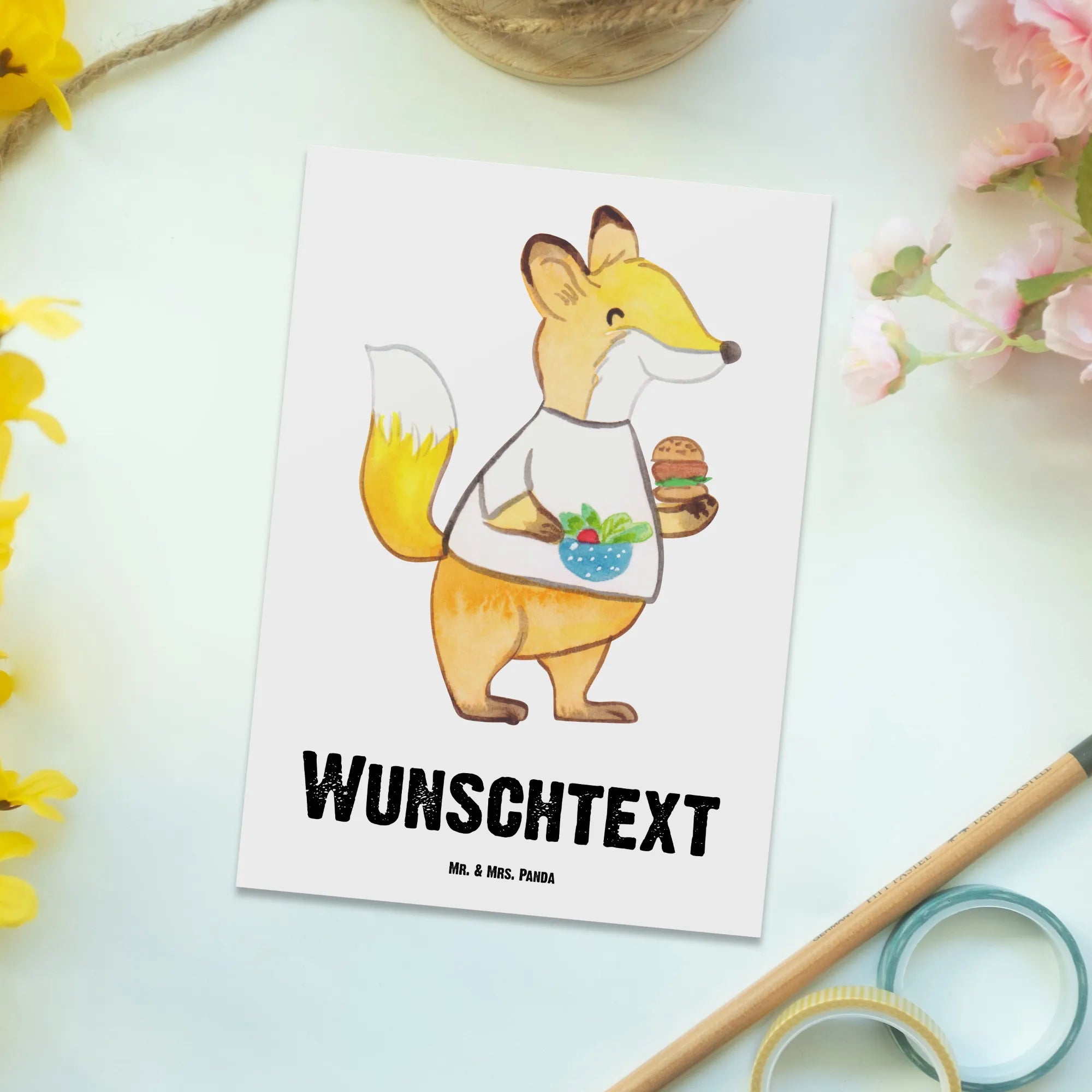 Die personalisierte Postkarte "Systemgastronom mit Herz" aus der Berufe Kollektion von Mr. & Mrs. Panda ist das perfekte Geschenk für all jene, die in der Systemgastronomie tätig sind oder einen besonderen Bezug dazu haben. Mit einer liebevollen Illustration eines kleinen, süßen Fuchses, der in einem T-Shirt einen frisch zubereiteten Burger serviert, zaubert diese Karte jedem ein Lächeln ins Gesicht.