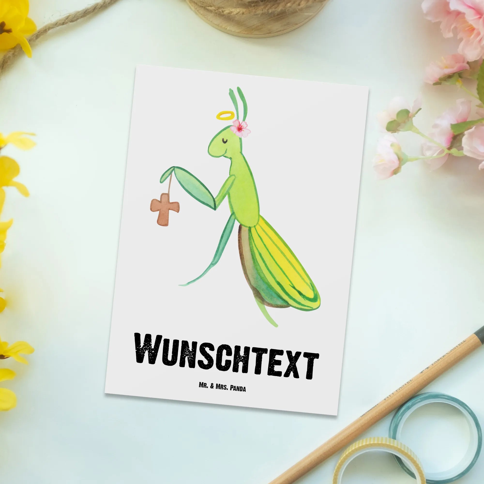Die personalisierte Postkarte "Theologin mit Herz" aus der kreativen Kollektion Berufe von Mr. & Mrs. Panda ist das perfekte Geschenk für angehende Theologinnen oder erfahrene Theologinnen. Egal ob zum Berufseinstieg, zur bestandenen Prüfung oder einfach nur, um Deine Wertschätzung auszudrücken, diese Karte ist die richtige Wahl. Mit dem süßen Motiv einer Gottesanbeterin, die einen Heiligenschein trägt und ein Kreuz in der Hand hält, kombiniert mit dem witzigen Slogan "Du bist nur ein halber Mensch, wenn du keine Theologin bist" sorgt sie für ein Schmunzeln und zeigt gleichzeitig, wie stolz Du auf die Person bist.