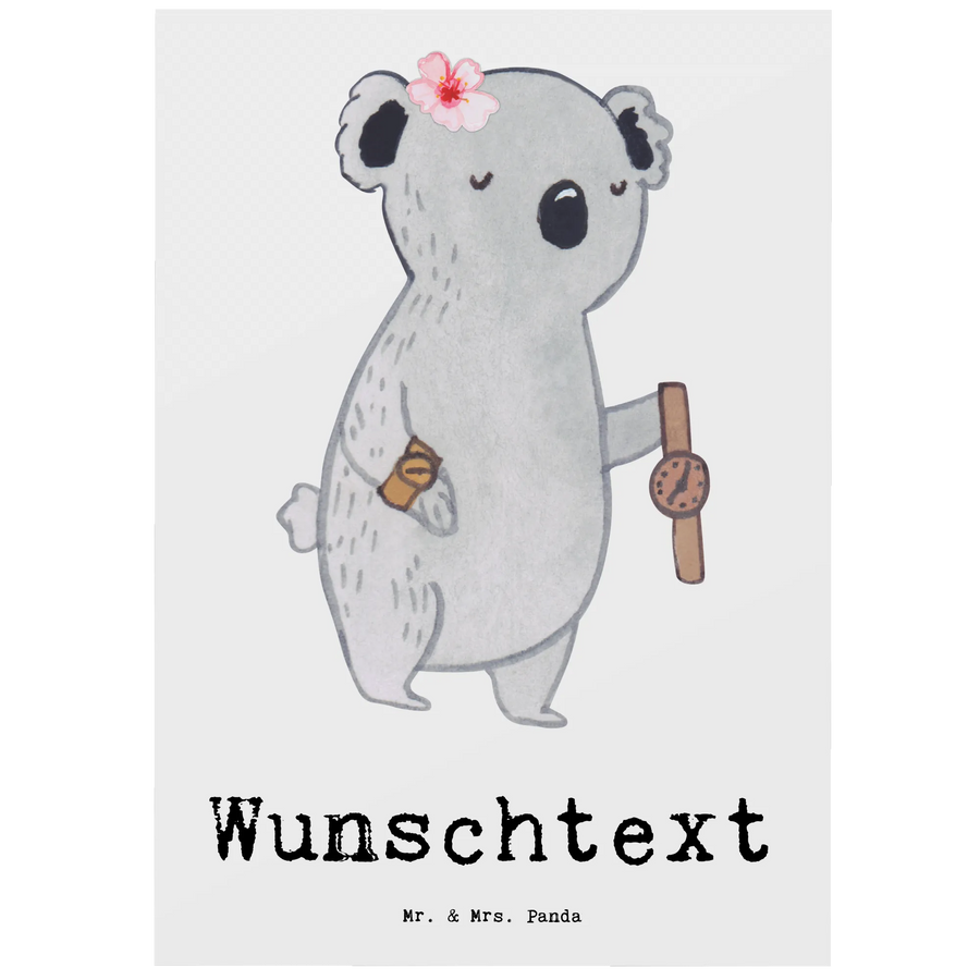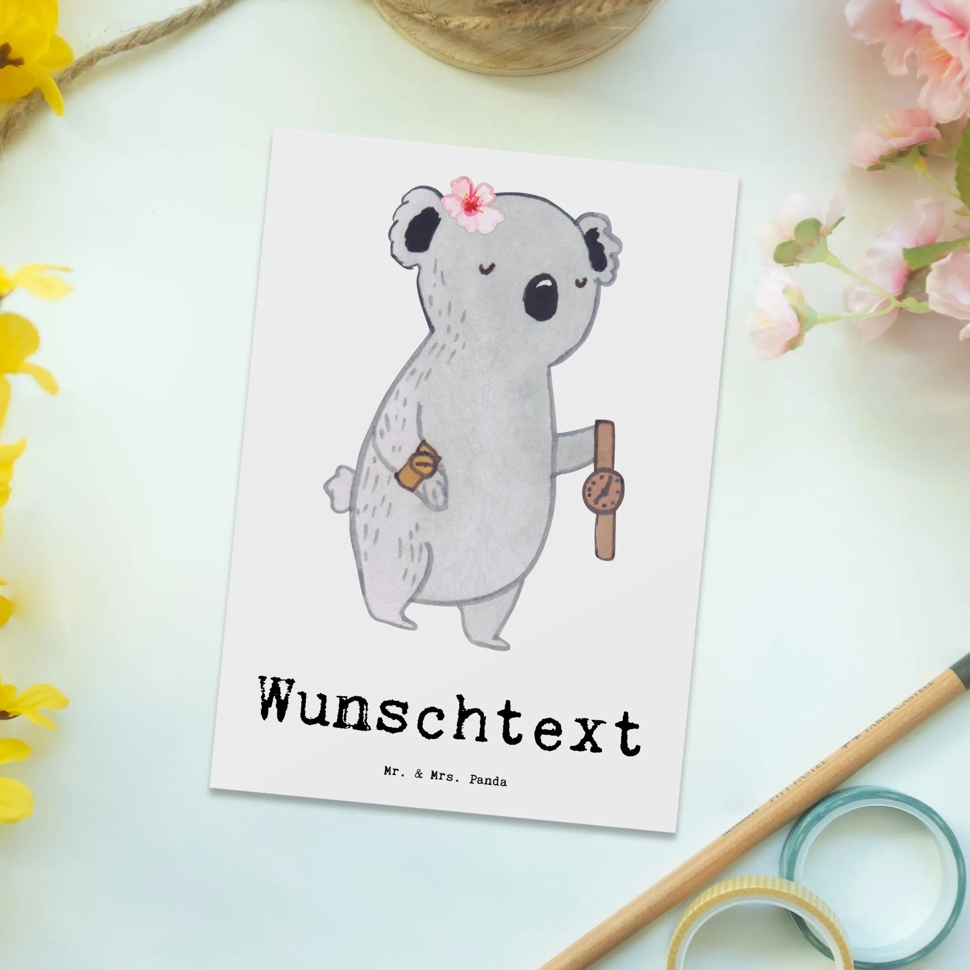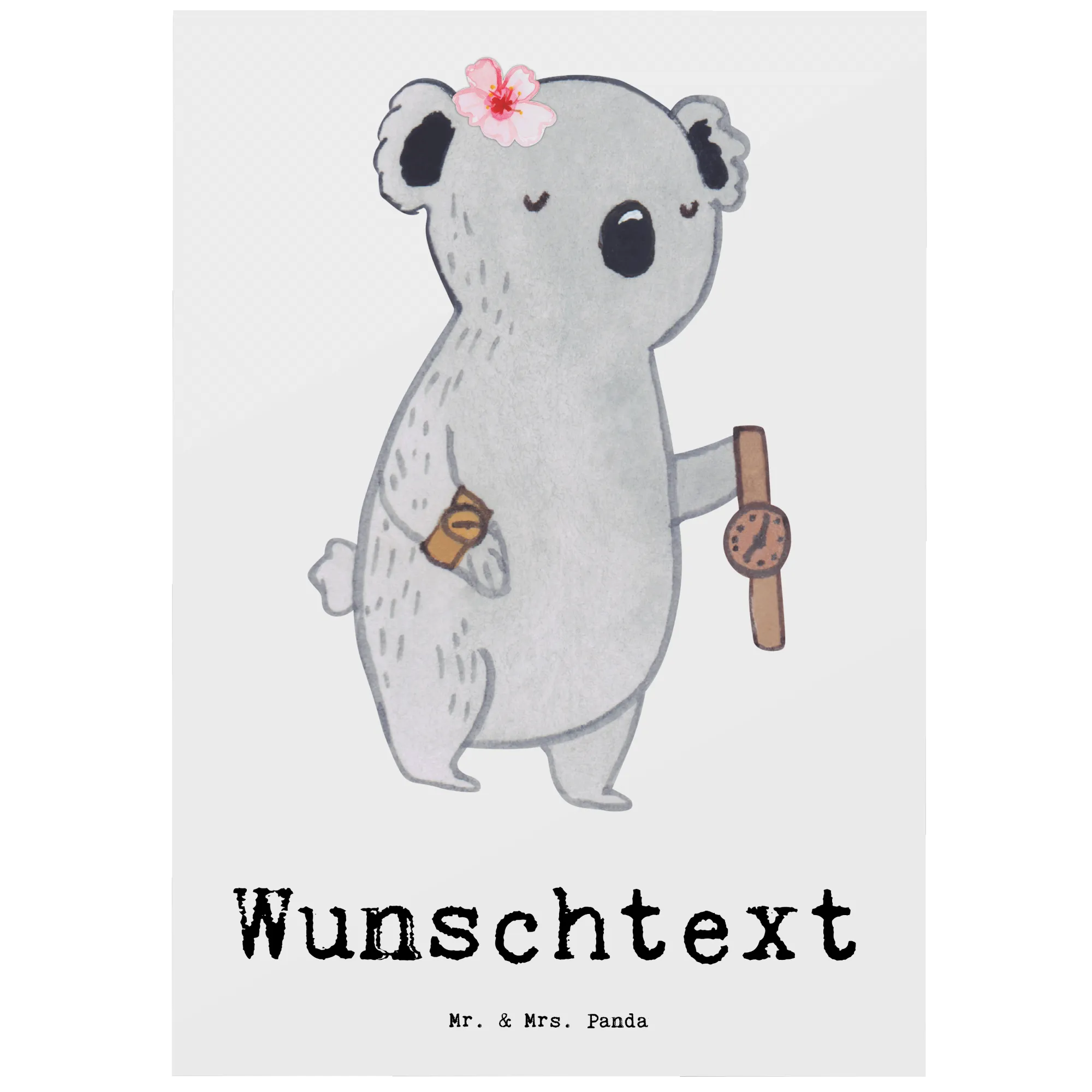Entdecke die perfekte personalisierte Postkarte für Uhrmacherinnen mit Herz aus der einzigartigen Berufe-Kollektion von Mr. & Mrs. Panda! Diese süße Karte zeigt einen bezaubernden weiblichen Koala mit einer goldenen Uhr am Handgelenk und ihrer stolzen Haltung, die eine weitere Uhr präsentiert.