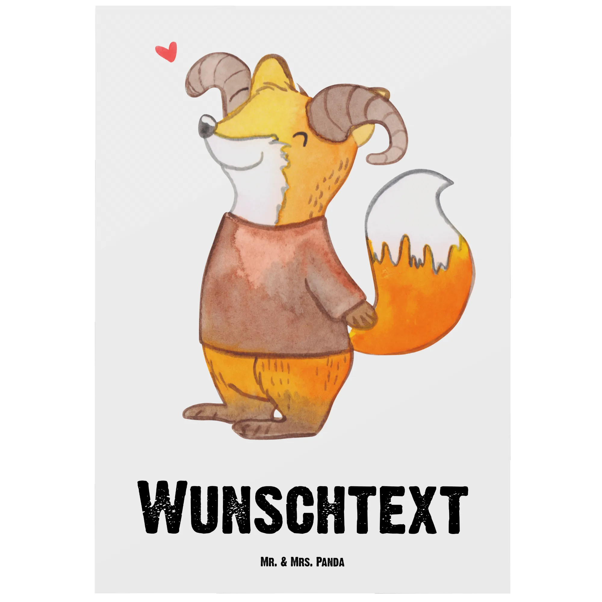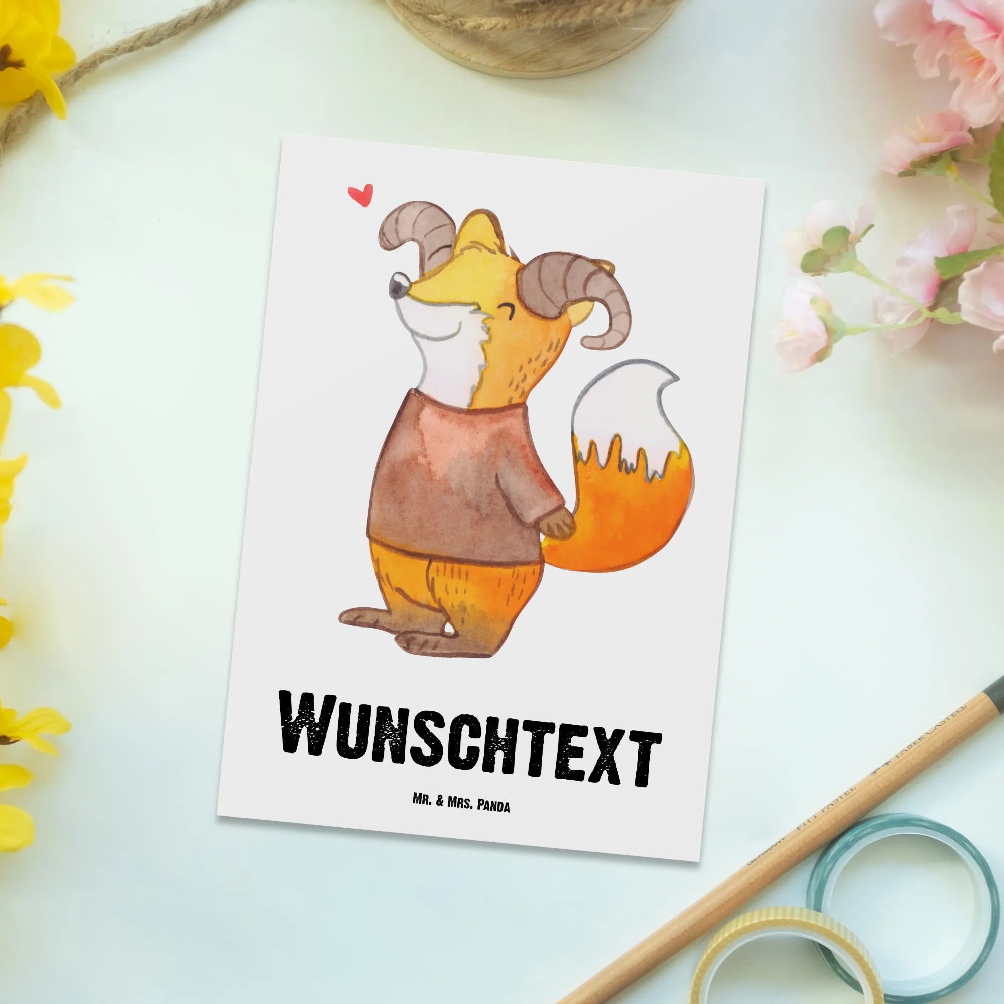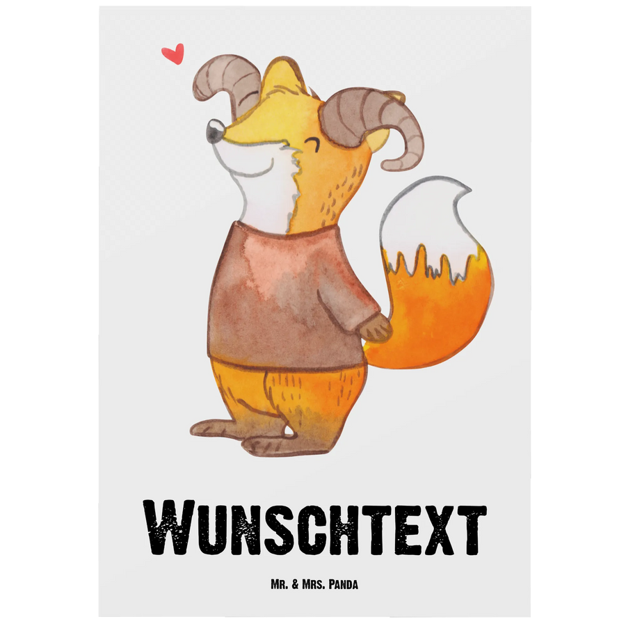 Die personalisierte Postkarte Widder Astrologie von Mr. & Mrs. Panda ist das perfekte Geschenk für alle, die sich für Sternzeichen und Astrologie begeistern. Mit ihrem bezaubernden Design, das einen niedlichen Fuchs zeigt, der sich als Widder verkleidet hat, bringt sie Farbe und Freude in jedes Zuhause. Der Slogan 'Widder: Feurig im Geist, mutig im Herzen' unterstreicht die dynamische und leidenschaftliche Natur dieses Sternzeichens.