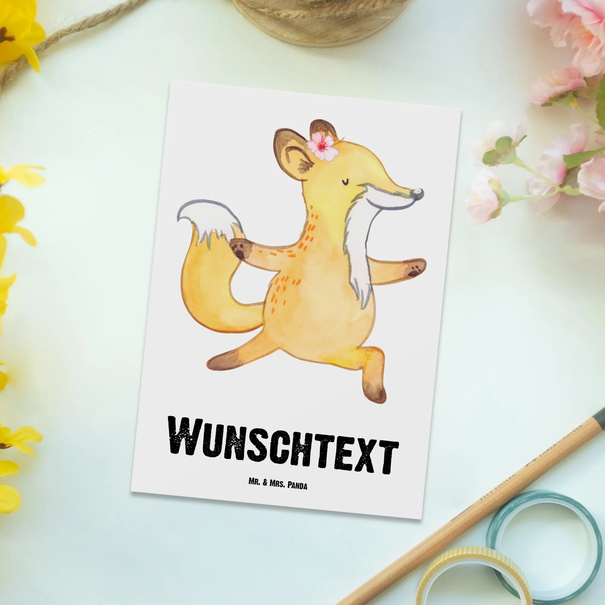 Die personalisierte Postkarte mit dem süßen Motiv der Yogalehrerin mit Herz ist das perfekte Geschenk für alle, die das Yogastudio und die entspannenden Stunden auf ihrer Matte lieben. Ob als Dankeschön für die beste Yogalehrerin, für den Abschied von einer Kollegin oder zur Feier eines Jubiläums – diese Karte bringt Freude und Wertschätzung zum Ausdruck. Mit einem charmanten Fuchs, der in der Krieger-Position meditativ die Ruhe ausstrahlt, und dem witzigen Slogan 'Du bist nur ein halber Mensch, wenn du keine Yogalehrerin bist', trifft sie genau den richtigen Ton. Die besondere Kollektion 'Berufe' von Mr. & Mrs. Panda ist eine einzigartige Möglichkeit, um all den besonderen Menschen in deinem Leben zu zeigen, wie viel sie dir bedeuten.