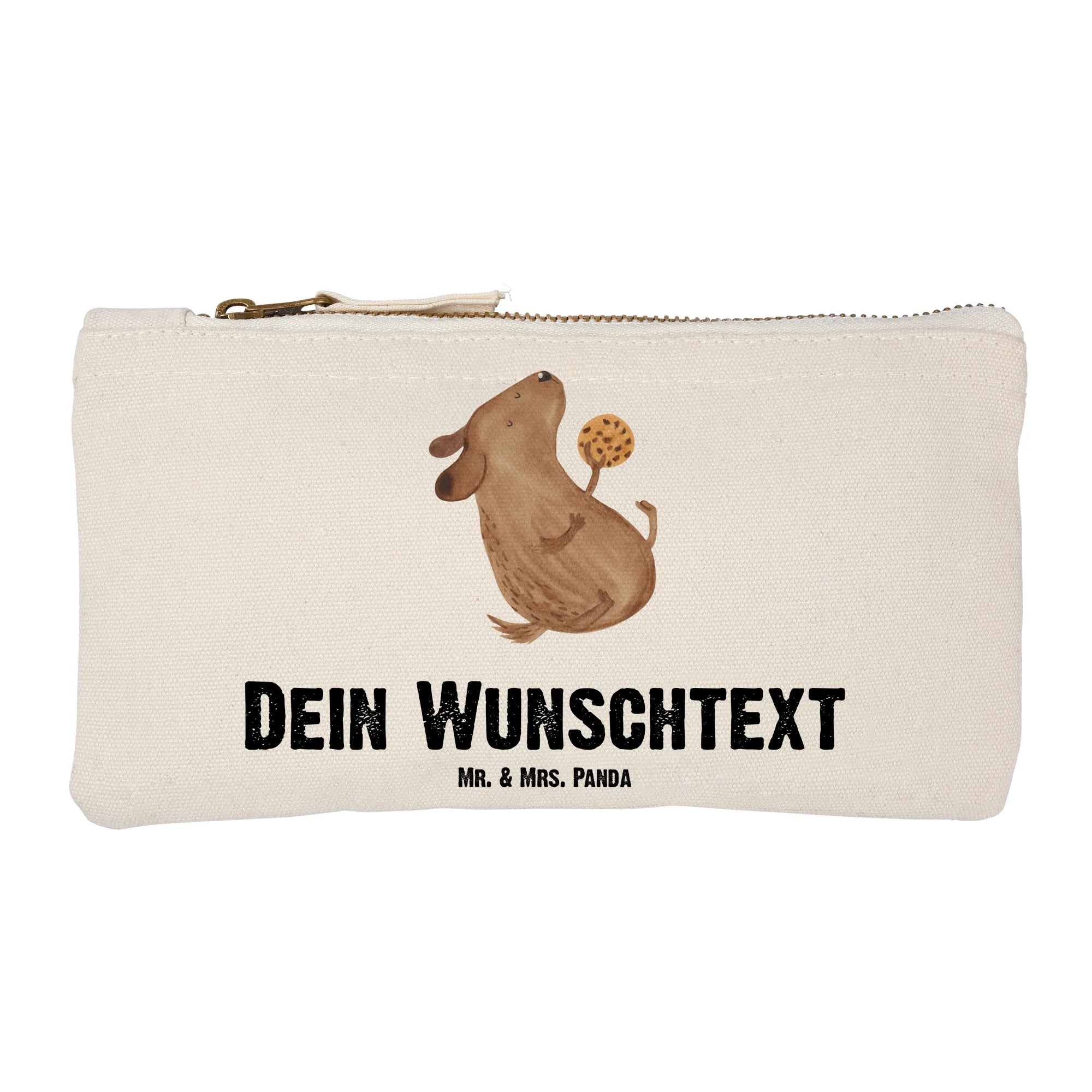 Suchst du nach einem ganz besonderen Geschenk für einen Tierliebhaber in deinem Freundeskreis? Unsere personalisierte Schminktasche mit dem süßen Motiv "Hund Keks" aus der Hunde Kollektion von Mr. & Mrs. Panda ist die perfekte Wahl! Diese exquisite Schminktasche ist nicht nur stilvoll, sondern auch äußerst praktisch. Sie ist hochwertig bedruckt mit einem hinreißenden Hund, der freudig einen Keks genießt und bringt so eine fröhliche Note in den Alltag. Egal, ob für die eigene Kosmetik oder als liebevolles Geschenk – diese Tasche ist immer eine tolle Entscheidung.