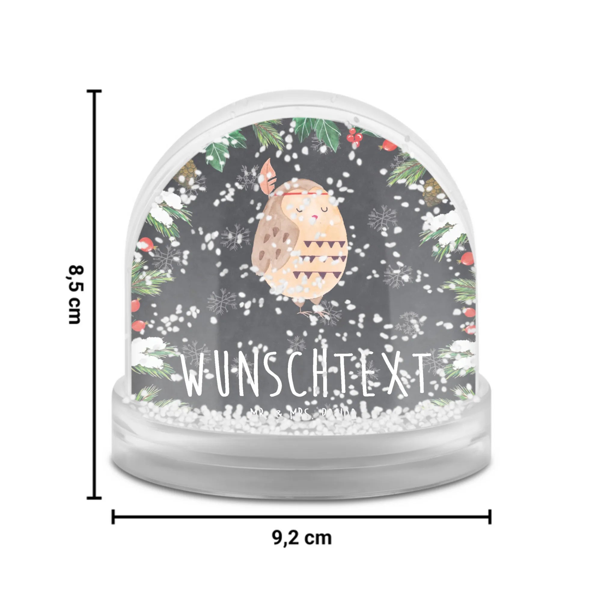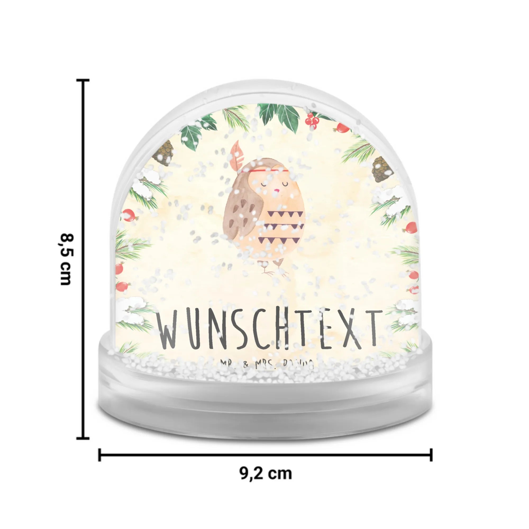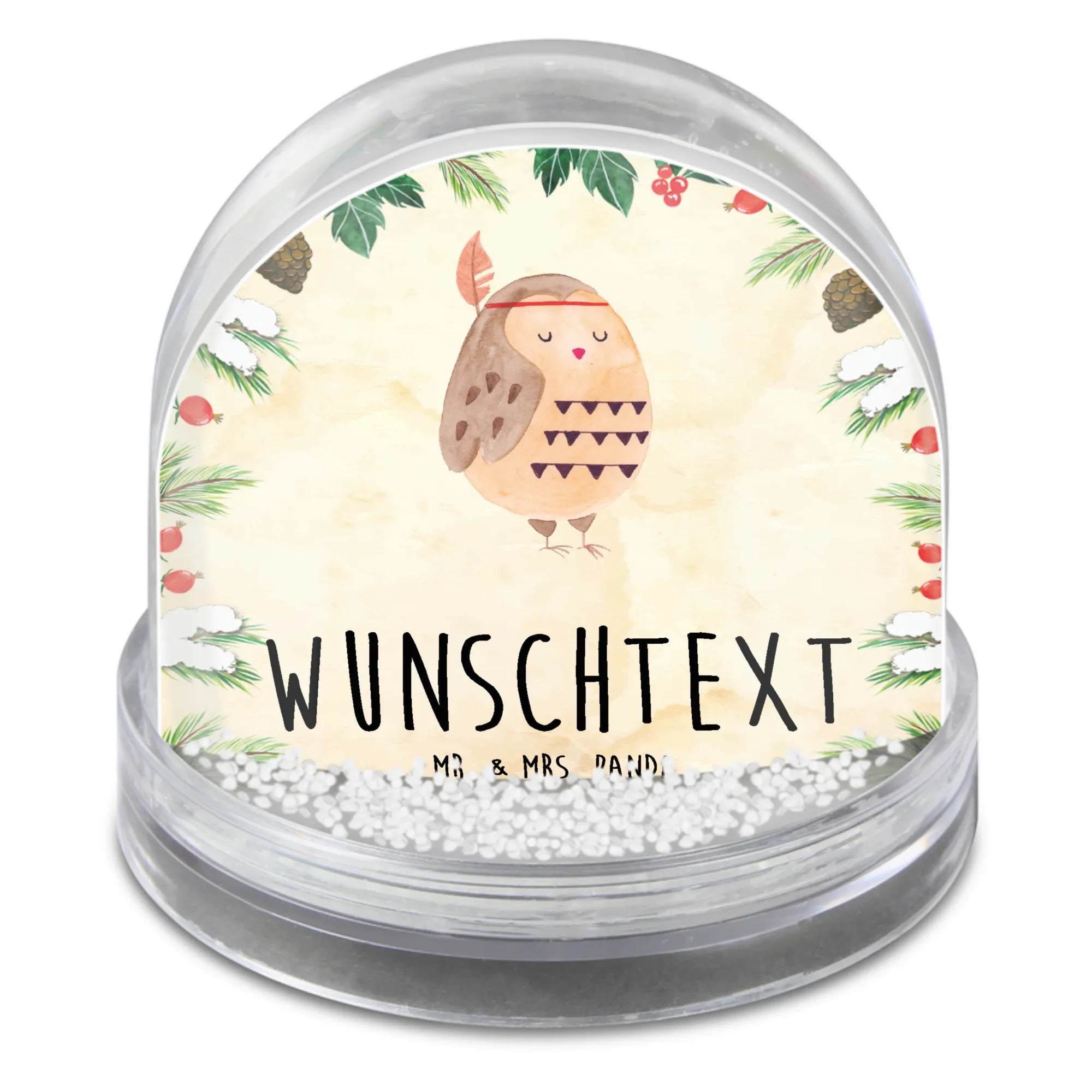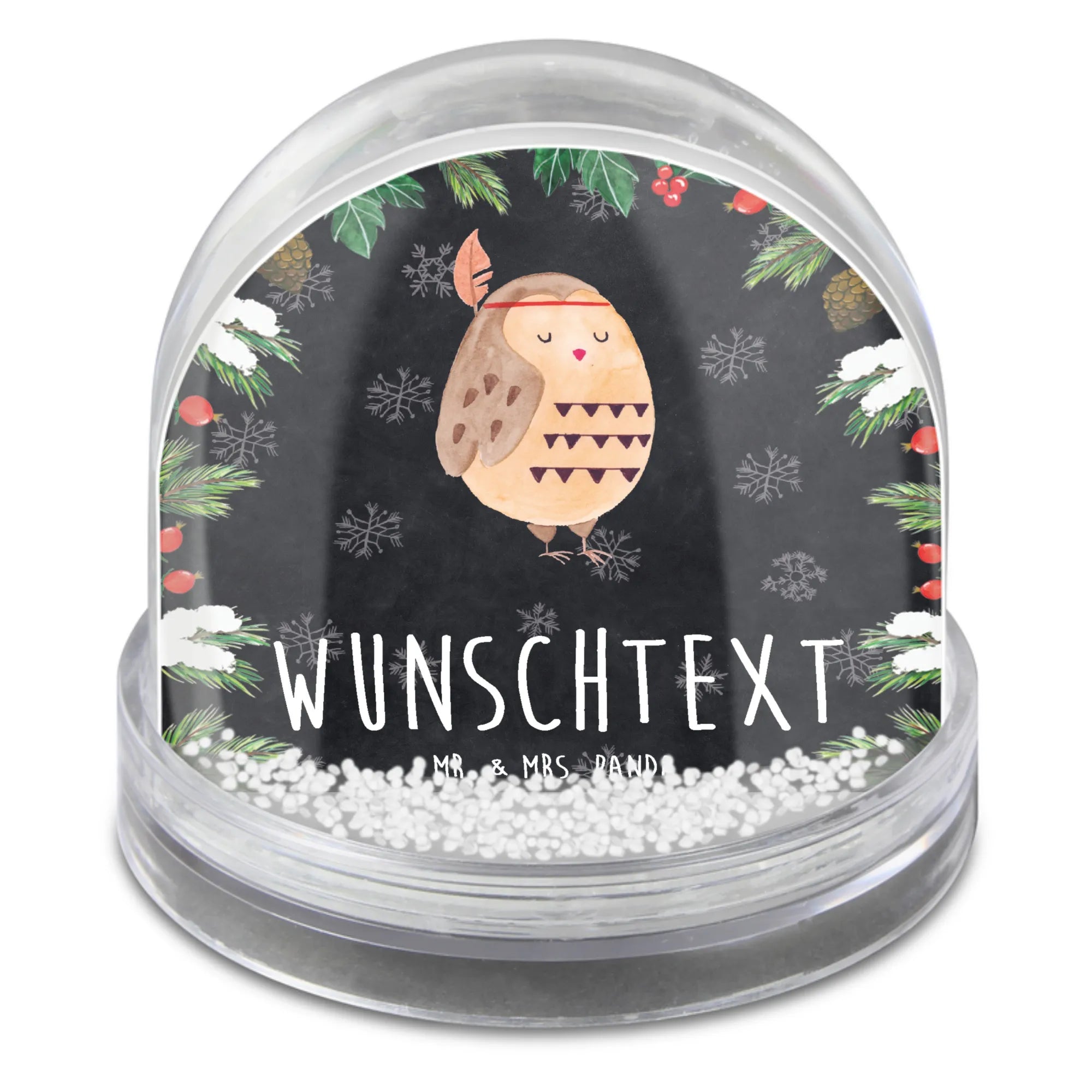 Suchst du das perfekte Geschenk für Eulenliebhaber oder Abenteurer? Die personalisierte Schneekugel 'Eule Federschmuck' von Mr. & Mrs. Panda ist genau das, was du brauchst!