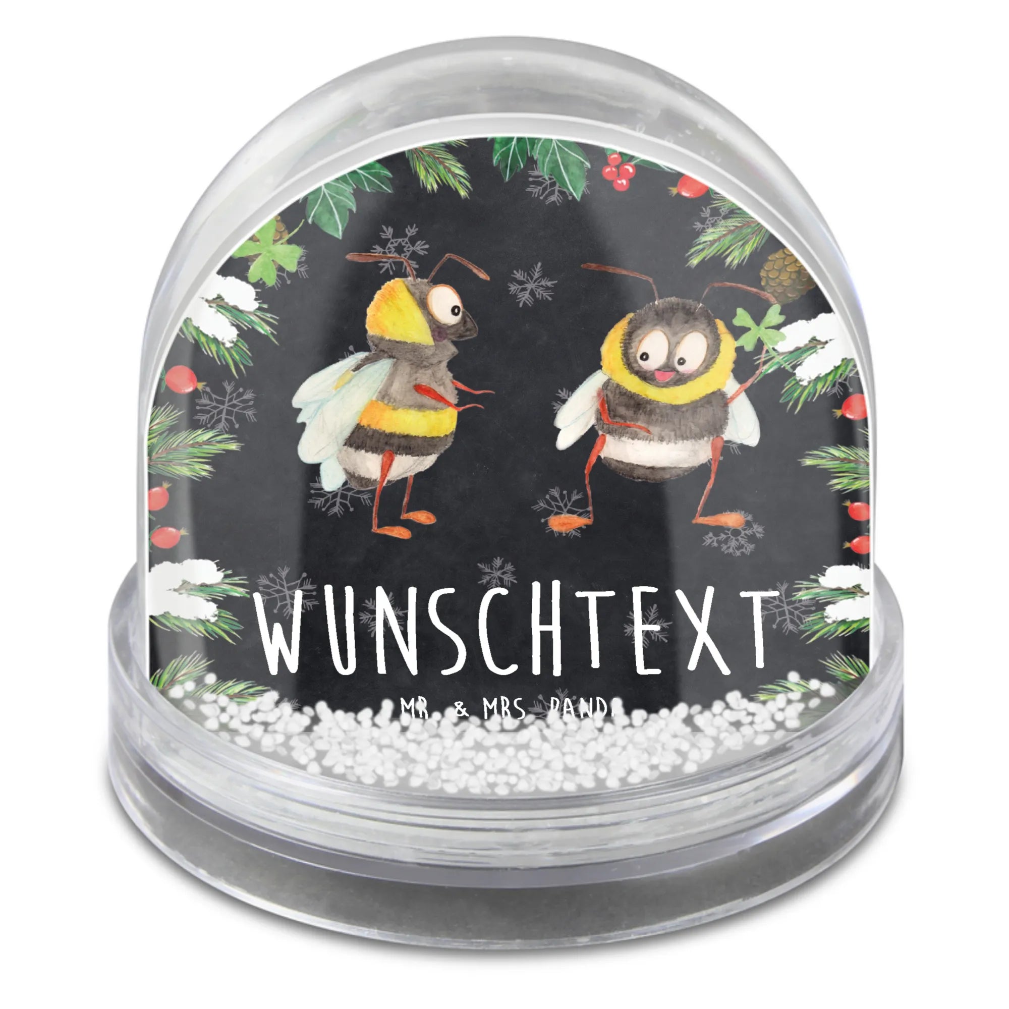 Entdecke die zauberhafte, personalisierte Schneekugel 'Hummeln mit Kleeblatt' aus der liebevollen Kollektion Small World von Mr. & Mrs. Panda! Diese Schneekugel ist nicht nur ein wunderschönes Dekorationsstück, sondern auch ein perfektes Geschenk, um jemandem eine Freude zu bereiten oder um seine eigene gute Laune zu fördern.