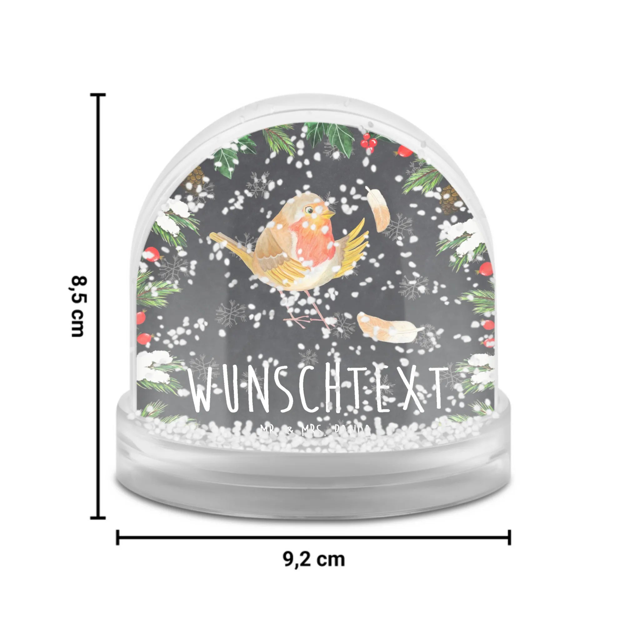 Entdecke die bezaubernde personalisierte Schneekugel von Mr. & Mrs. Panda mit dem niedlichen Rotkehlchen und bunten Federn! Diese wunderschöne Schüttelkugel ist nicht nur ein echter Hingucker, sondern auch ein zauberhaftes Geschenk für jeden Anlass.