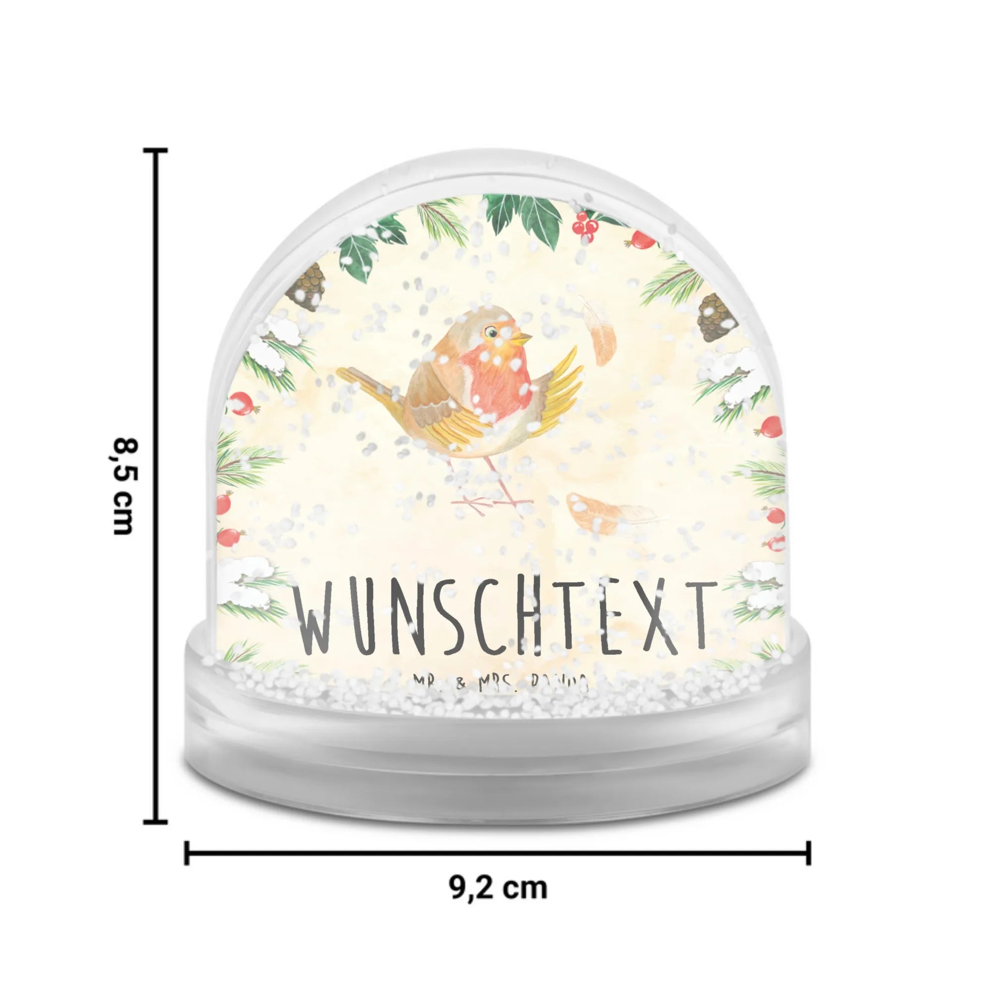Personalisierte Schneekugel Rotkehlchen Federn - Naturpapier