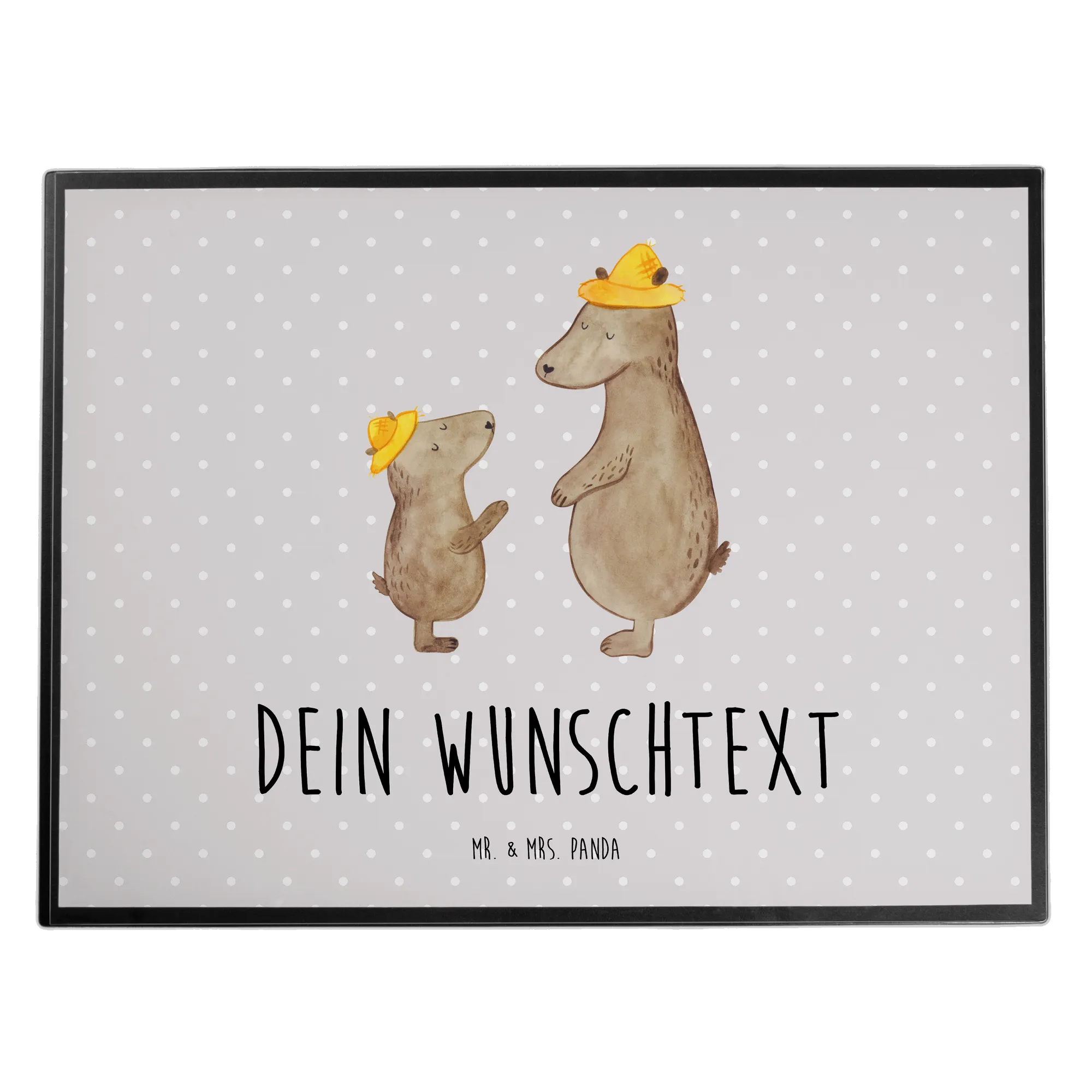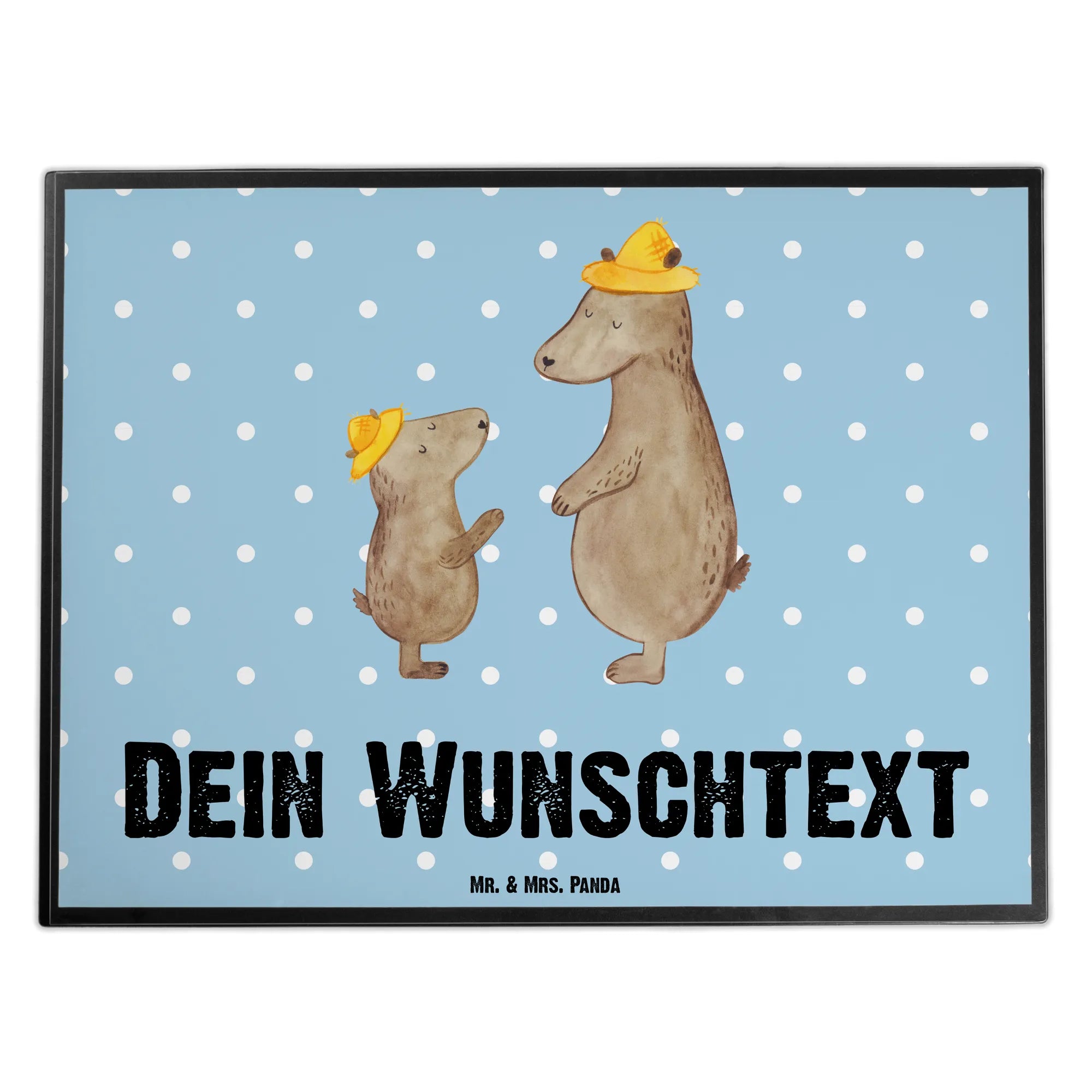 Die personalisierte Schreibtischunterlage Bären mit Hut von Mr. & Mrs. Panda ist das perfekte Geschenk für jeden Vater und für alle, die ihren Lieblingsmenschen besonders schätzen. Mit dem süßen Motiv der liebevollen Bären, die sich voller Stolz und Zuneigung zueinander neigen, drückt diese Schreibtischauflage mehr als nur Worte aus. Der größere Bär in seinem schicken Hut ist das Symbol für all die starken Väter, die ihre Kinder unterstützen und ein Vorbild sind. Der kleinere Bär, der zu ihm aufschaut, steht für die Kinder, die von ihrem Papa lernen und sich geborgen fühlen.
