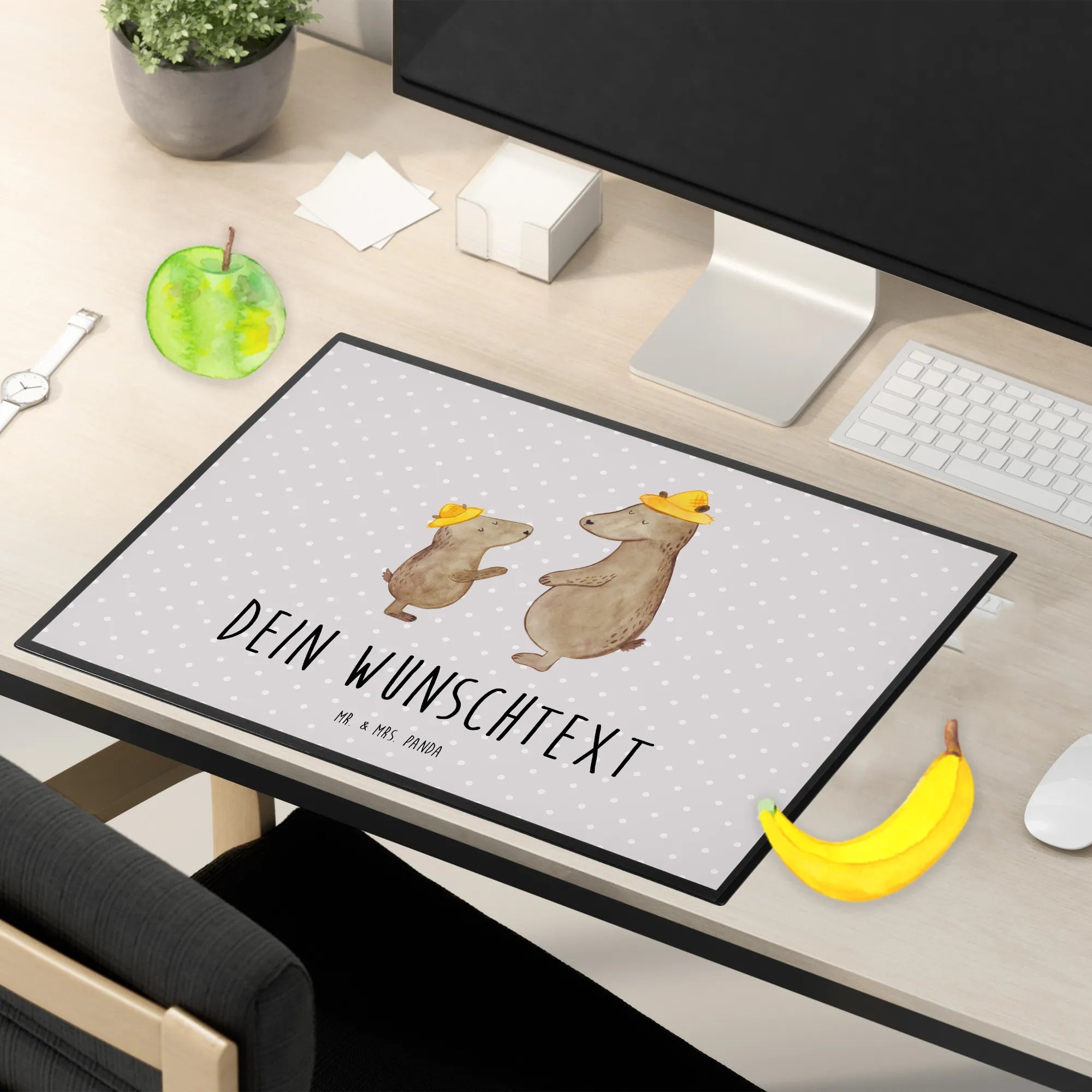 Die personalisierte Schreibtischunterlage Bären mit Hut aus der einzigartigen Familien Kollektion von Mr. & Mrs. Panda ist der perfekte Weg, um Deinen Arbeitsplatz zu verschönern und gleichzeitig ein Herzstück der Familie zu feiern! Mit einem liebevollen Motiv zweier Bären, die einander zugewandt sind und in trendigen Hüten strahlen, bringst Du ein Stück Heimat auf Deinen Schreibtisch.