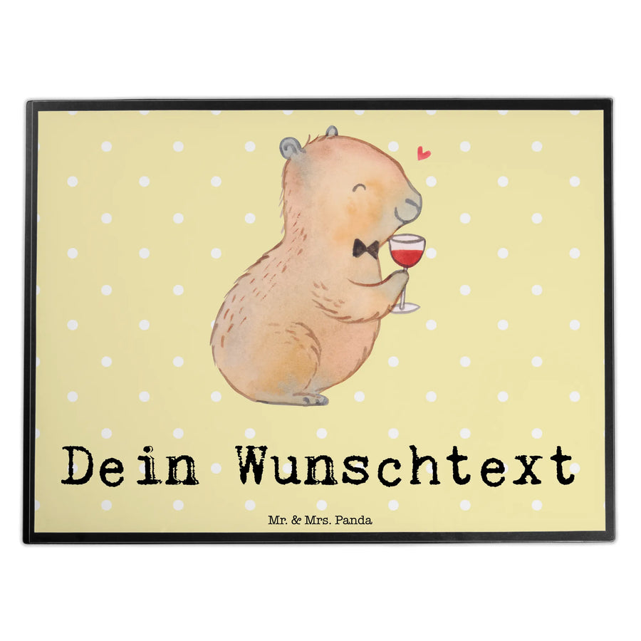 Die personalisierte Schreibtischunterlage mit dem charmanten Capybara-Wein-Motiv von Mr. & Mrs. Panda ist das perfekte Geschenk für Weinliebhaber und diejenigen, die das Besondere schätzen. Mit einem liebevoll handgezeichneten Capybara, das genüsslich ein Glas Wein hält, bringt dieses Kunstwerk nicht nur Freude, sondern auch eine gute Portion guten Geschmack an jeden Arbeitsplatz oder Schreibtisch.
