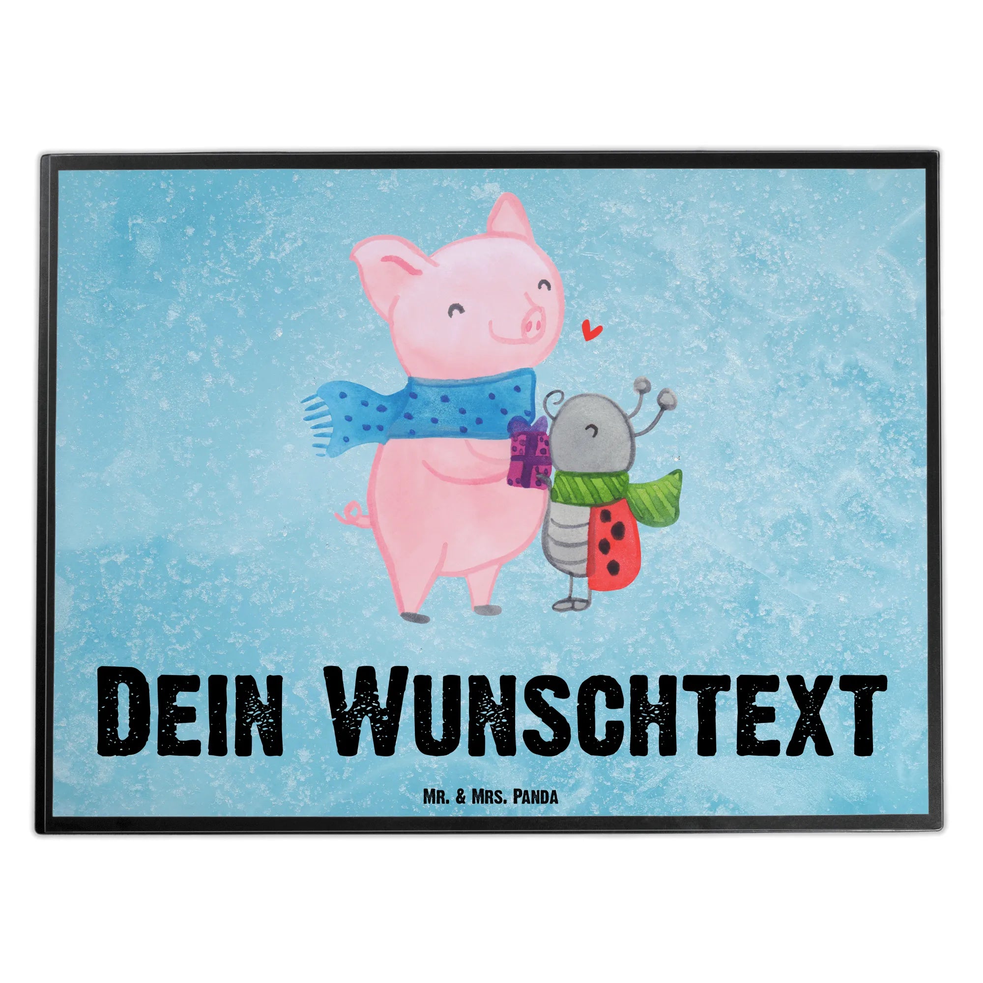 Die personalisierte Schreibtischunterlage Glühschwein Smörle von Mr. & Mrs. Panda ist das ideale Geschenk für alle, die die winterliche Jahreszeit lieben! Diese einzigartige Schreibtischauflage bringt nicht nur Farbe und Freude auf jeden Arbeitsplatz, sondern sorgt auch für ein angenehmes Schreibgefühl. Mit einem liebevoll handgezeichneten Motiv zeigt unser Glühschwein Smörle ein fröhliches rosa Schwein mit einem blauen gepunkteten Schal, das eine Tasse Glühwein hält, und einen süßen Marienkäfer, der stolz ein Geschenk überreicht. Diese herzerwärmende Szene vermittelt die Botschaft von Freundschaft und Teilung - perfekt für die kalte Jahreszeit! Mit einem zusätzlichen Spruch, "When the weather outside is frightful, Glühwein is so delightful", zaubert sie jedem ein Lächeln ins Gesicht.
