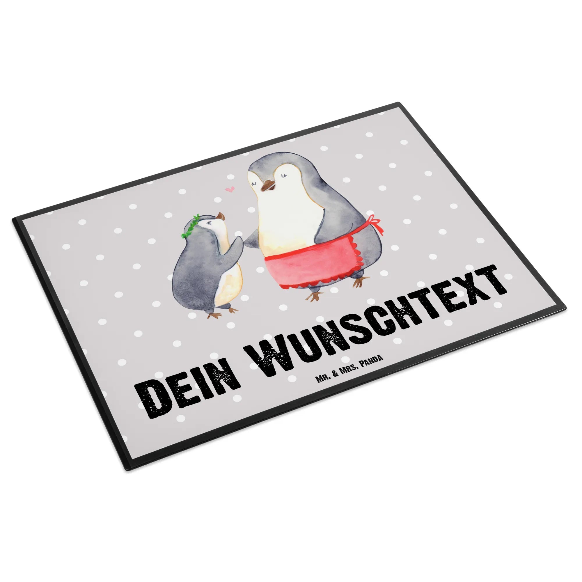 Personalisierte Schreibtischunterlage Pinguin mit Kind - Grau Pastell