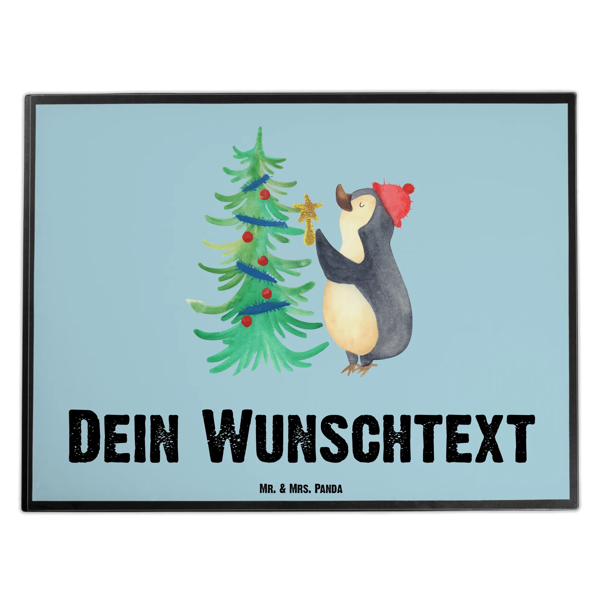 Personalisierte Schreibtischunterlage Pinguin Weihnachtsbaum