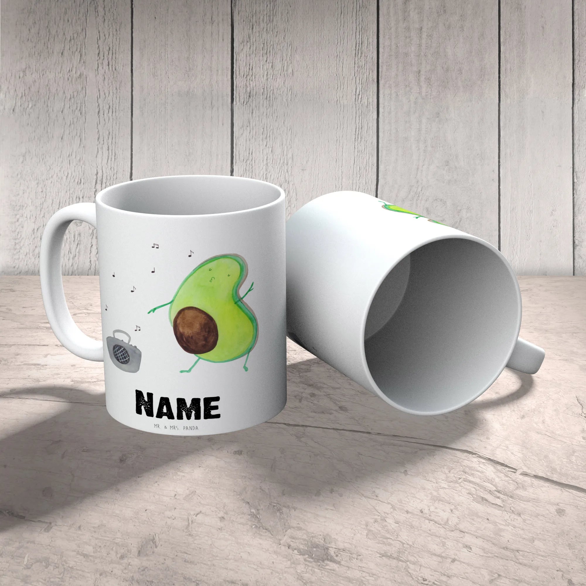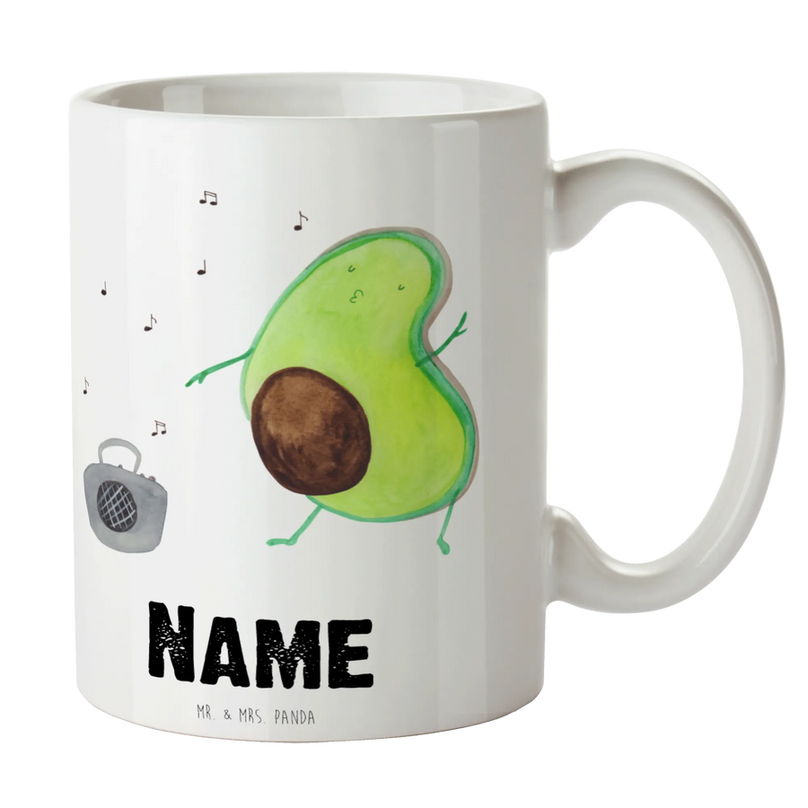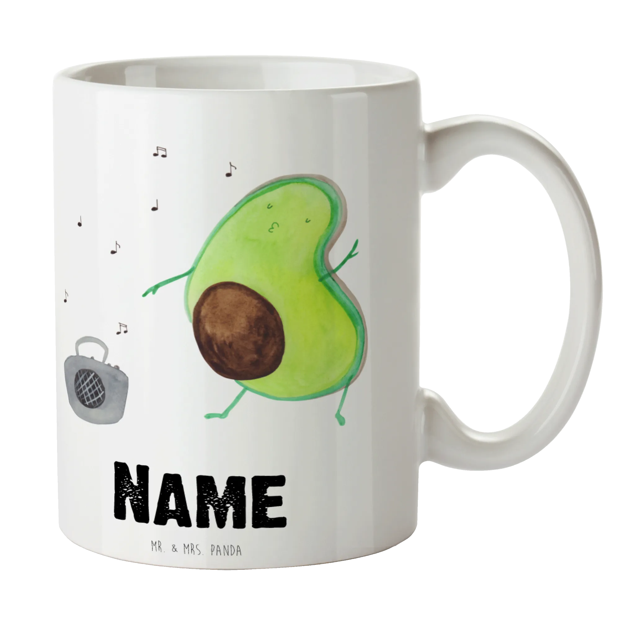 Die personalisierte Tasse 'Avocado tanzt' von Mr. & Mrs. Panda ist das perfekte Geschenk für jeden Avocado-Liebhaber! Diese wunderschöne Keramiktasse ist nicht nur optisch ein Highlight, sondern auch unglaublich funktional. Mit einem charmanten Motiv einer tanzenden Avocado vor einem Ghettoblaster und dem liebevollen Spruch 'Mit Musik ist die Welt schöner, die Gedanken leiser, und die Drinks schmecken besser', bringt sie immer gute Laune in den Alltag.