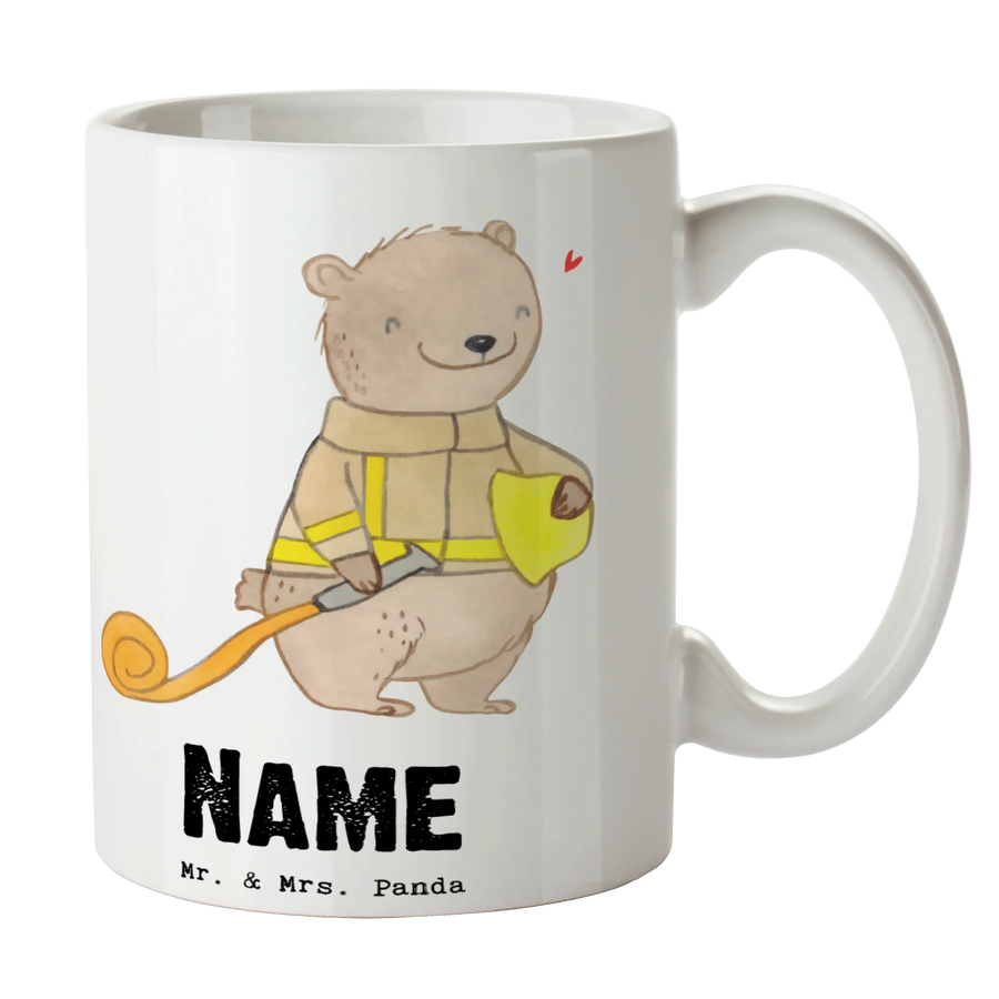 Besondere Merkmale: Die Motive stammen aus der liebevollen Hobby & Sport Kollektion von Mr. & Mrs. Panda und wurden handgezeichnet. Das Ergebnis ist eine fröhliche, hochwertige Namenstasse, die sich wunderbar als Geschenk zum Geburtstag, Florianstag, zur Auszeichnung oder als Mitbringsel fürs Feuerwehrfest eignet.
