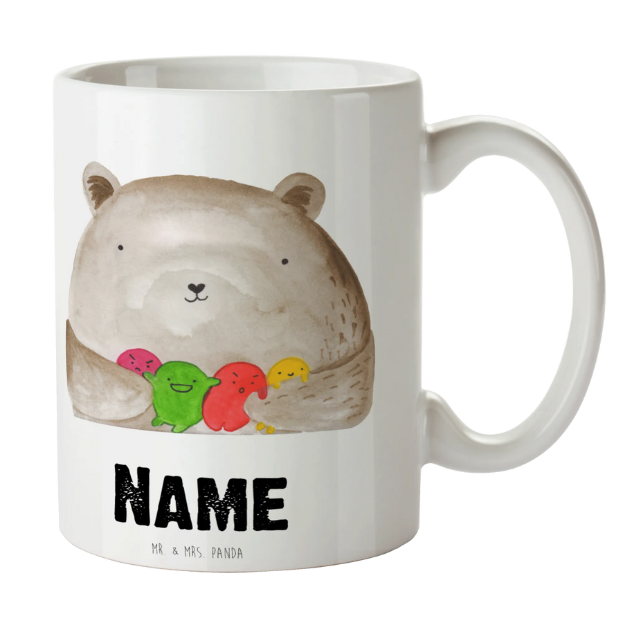 Die personalisierte Tasse mit dem bezaubernden Bär Gefühl von Mr. & Mrs. Panda ist das perfekte Geschenk für alle Bärenliebhaber und Freunde von einzigartigen Geschenken! Diese wunderschöne Tasse ist nicht nur ein einfaches Trinkgefäß, sondern ein persönliches Kunstwerk, das mit deinem Wunschnamen oder einem besonderen Text versehen werden kann. Das süße Design zeigt einen Bären, der farbenfrohe Kugeln in den Händen hält – jede Kugel steht für ein Gefühl: Freude, Freundschaft, Liebe und manchmal auch ein wenig der verrückte Wahnsinn des Lebens. Die Kombination aus den strahlenden Farben und dem zauberhaften Bärenmotiv verleiht jeder Kaffeepause eine ganz besondere Note.