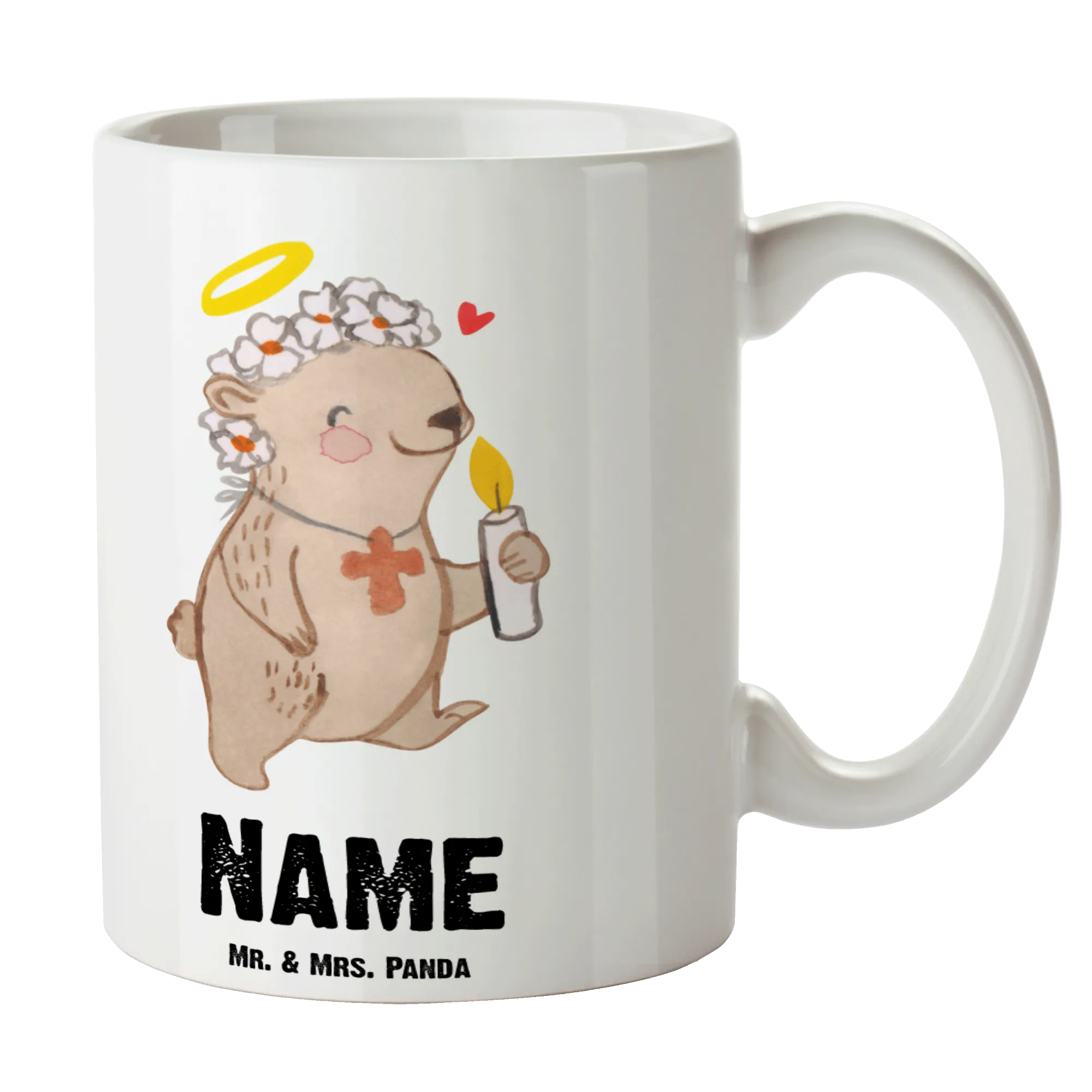 Entdecke die perfekte Tasse zur Kommunion mit dem zauberhaften Motiv Bär Kommunion Mädchen von Mr. & Mrs. Panda! Diese personalisierte Tasse ist nicht nur ein tolles Geschenk, sondern auch ein wunderschönes Erinnerungsstück für das besondere Fest.