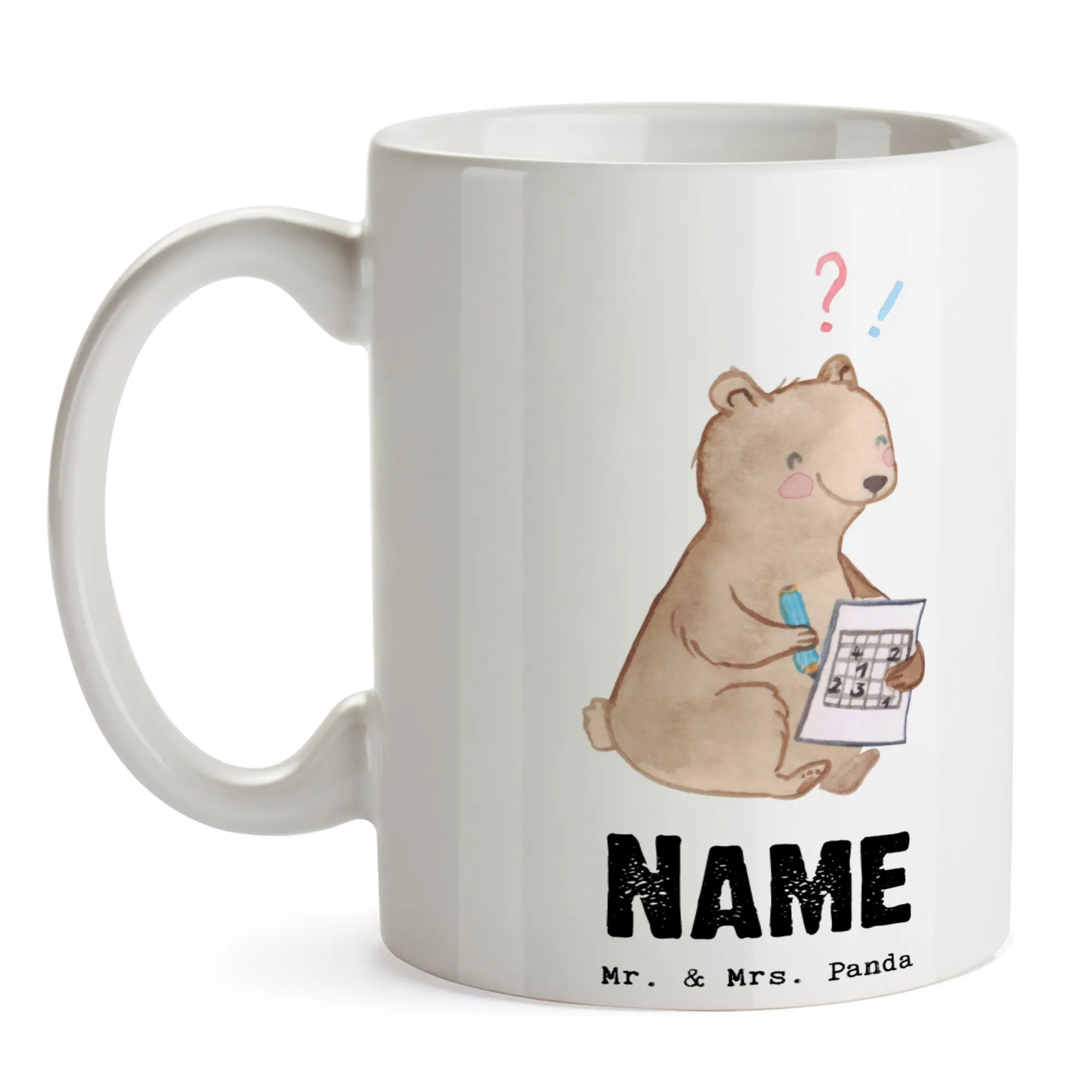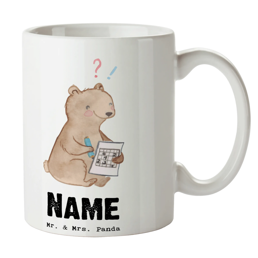 Die wunderschöne personalisierte Tasse mit dem süßen Bären-Motiv "Rätsel lösen Tage" von Mr. & Mrs. Panda ist das perfekte Geschenk für alle Rätselliebhaber und Denksportfreunde. Mit einem charmanten Bären, der eifrig versucht, ein Kreuzworträtsel zu lösen, inspiriert diese Tasse jeden Tag aufs Neue, seine grauen Zellen zu aktivieren und kreative Lösungen zu finden.