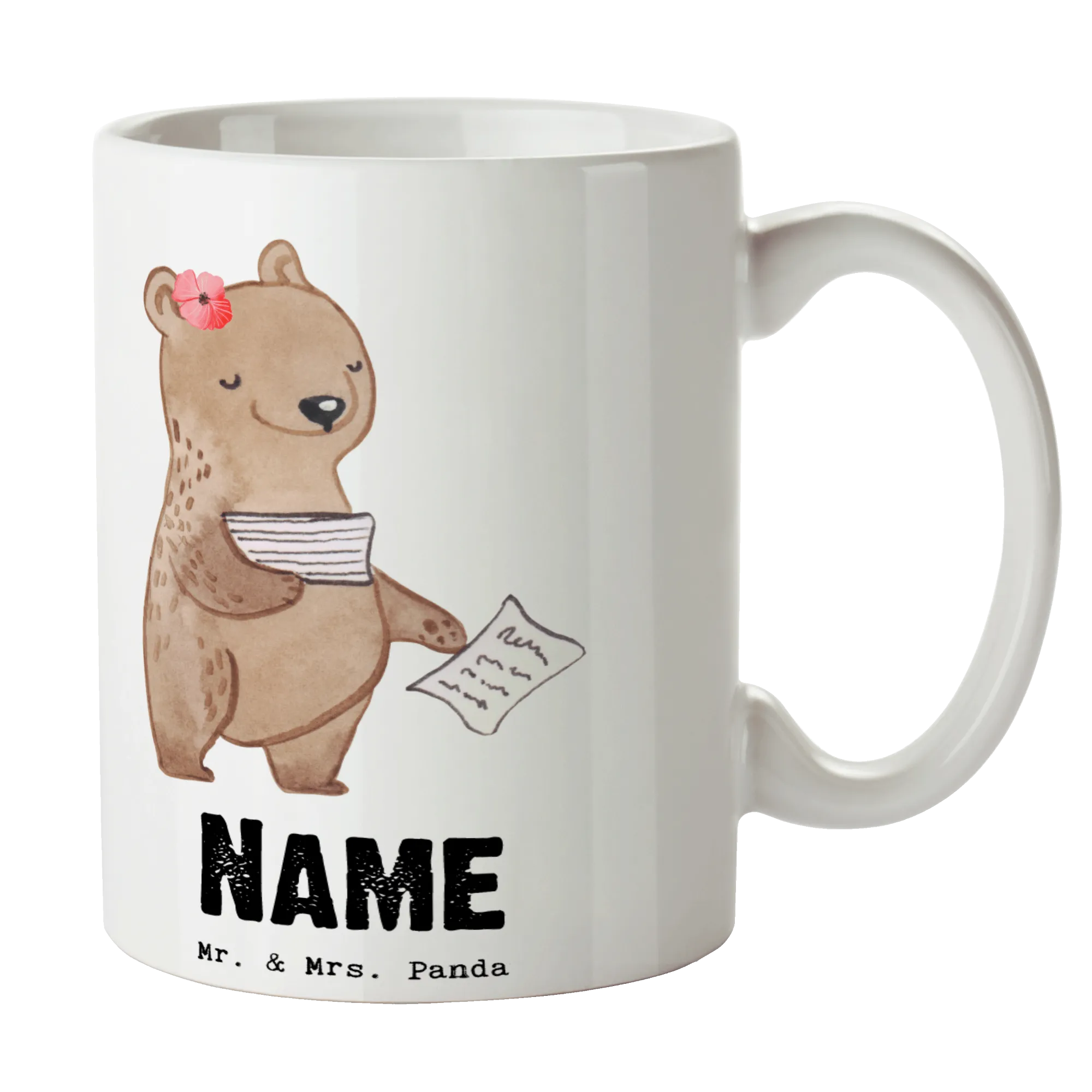 Die personalisierte Tasse "Bürokauffrau mit Herz" von Mr. & Mrs. Panda ist das perfekte Geschenk für alle Bürokauffrauen, die ihren Job lieben. Mit einem süßen Bärenmotiv, das stolz einen Stapel Blätter trägt, wird diese Tasse zum unverzichtbaren Begleiter im Büroalltag.