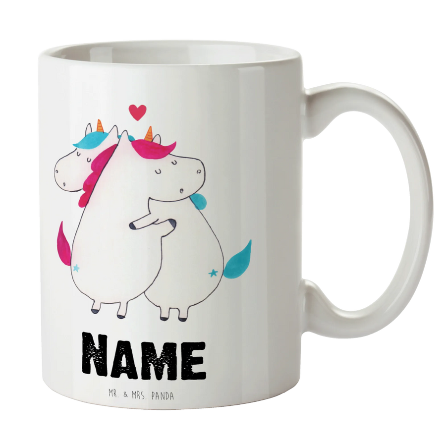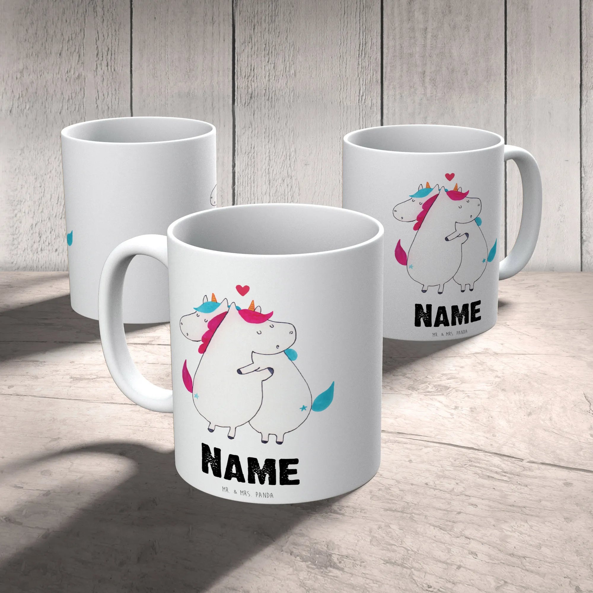 Die personalisierte Tasse Einhorn Mitteilung von Mr. & Mrs. Panda ist das perfekte Geschenk für alle, die das Außergewöhnliche lieben! Diese wunderschöne, spülmaschinenfeste Keramiktasse besticht nicht nur durch ihr zauberhaftes Einhorn-Motiv, sondern auch durch den Herz erwärmenden Spruch: "Wichtige Mitteilung: du bist wundervoll!". Jedes Mal, wenn der Beschenkte einen Schluck aus dieser Tasse nimmt, wird er an seine Einzigartigkeit erinnert und fühlt sich geliebt und geschätzt. Diese Tasse ist perfekt für jeden Anlass - sei es zum Valentinstag, als Geburtstagsgeschenk oder einfach nur, um jemandem zu zeigen, wie sehr er dir am Herzen liegt. Die niedlichen Einhörner, die sich umarmen, sind nicht nur ein echter Hingucker, sondern bringen auch ein Lächeln ins Gesicht und zaubern gute Laune.