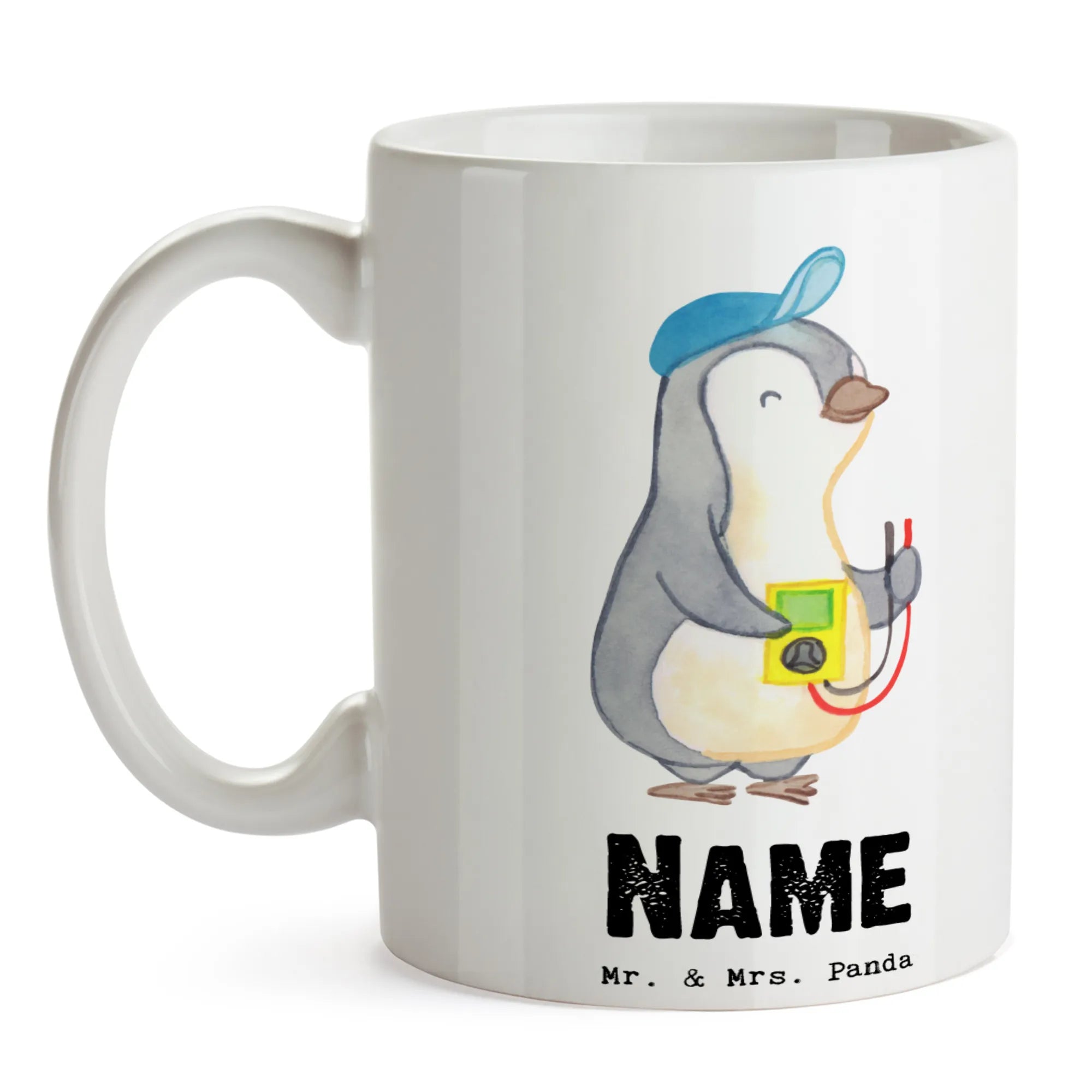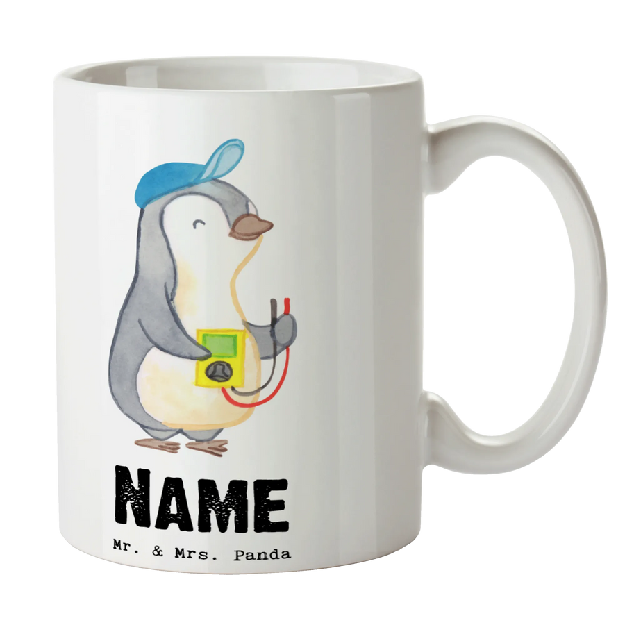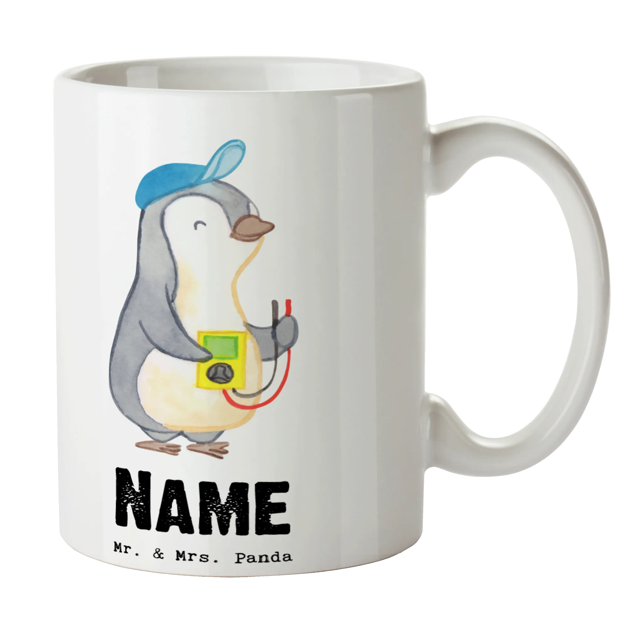 Die personalisierte Tasse "Elektriker mit Herz" von Mr. & Mrs. Panda ist das perfekte Geschenk für alle Elektriker, Elektrotechniker und Elektroinstallateure. Ob zu Berufsabschlüssen, Jubiläen, oder einfach nur um Danke zu sagen, diese Tasse wird garantiert Freude bereiten!