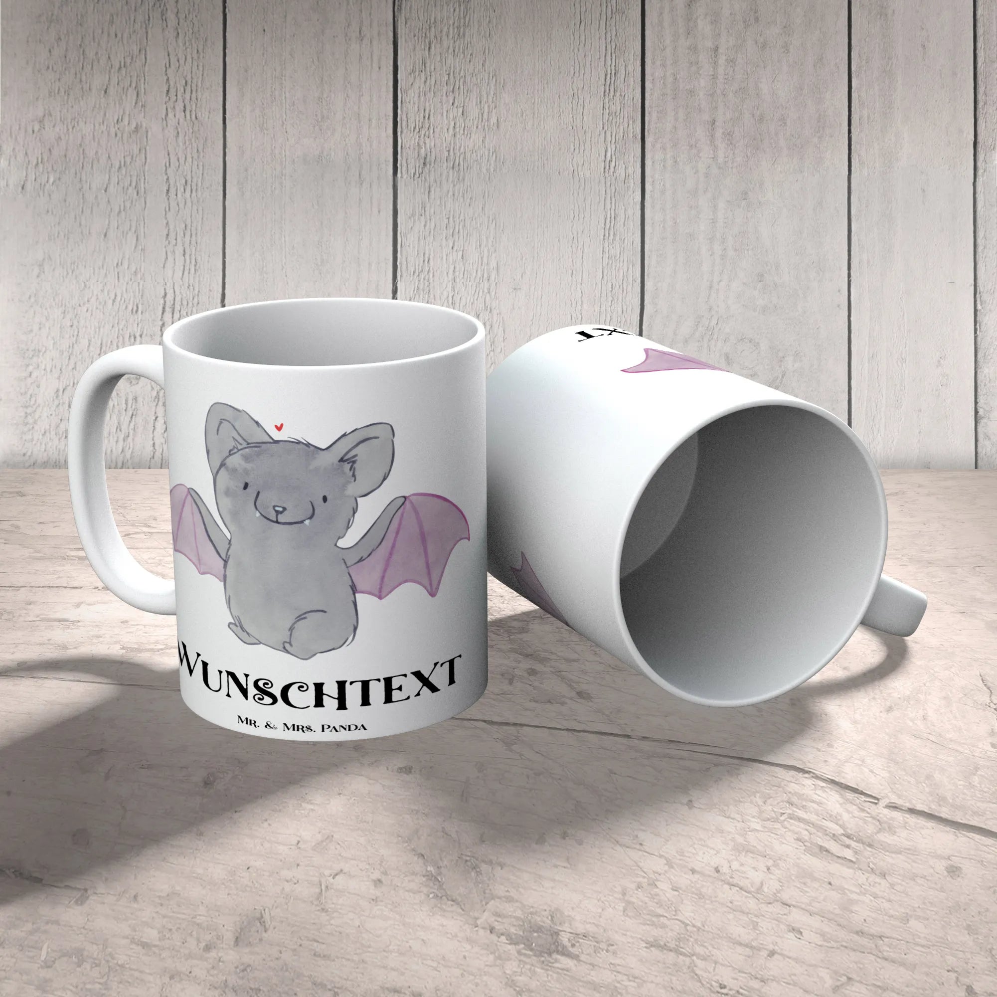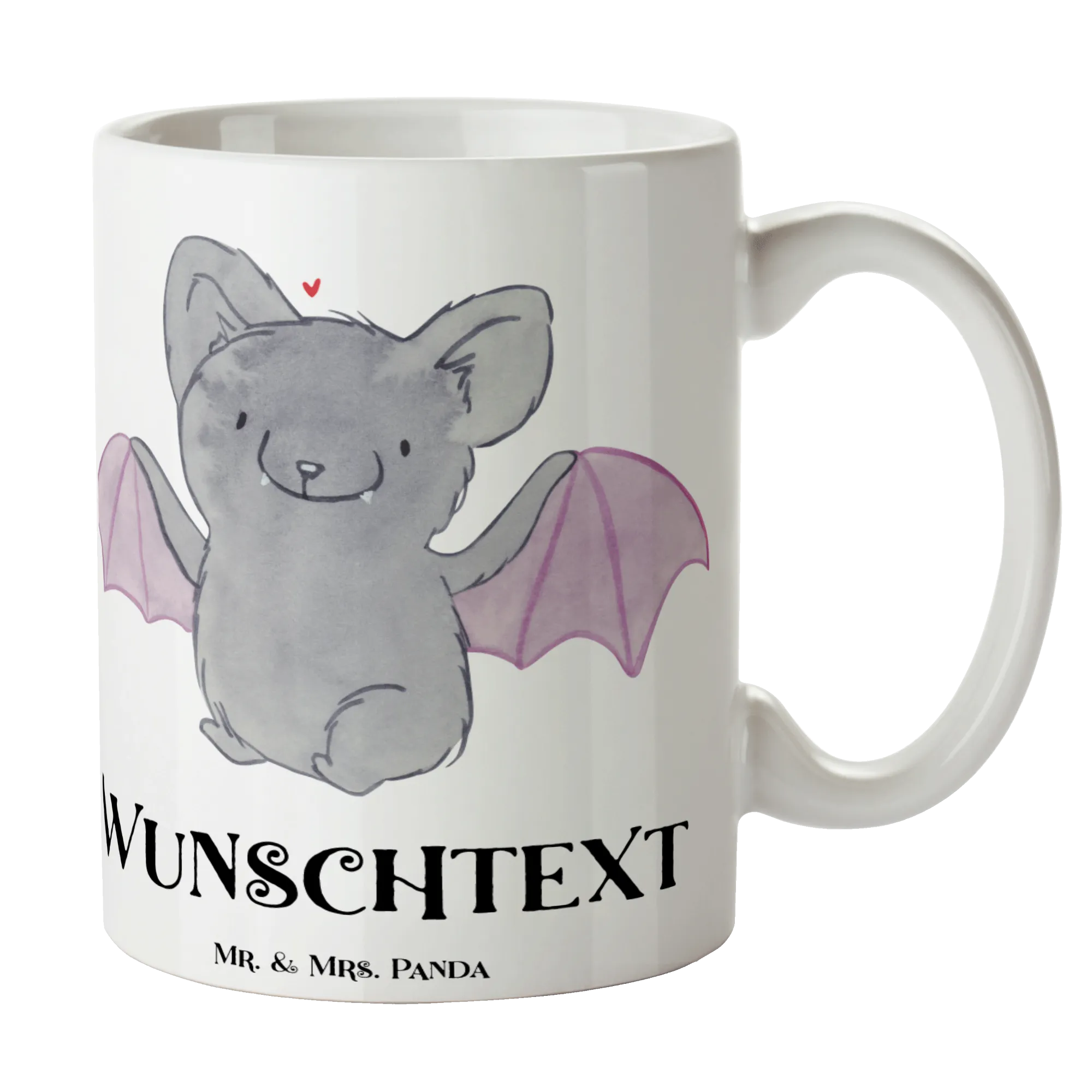 Die personalisierte Tasse "Fledermaus Classic" aus der Halloween-Kollektion von Mr. & Mrs. Panda ist das perfekte Geschenk für alle, die die gruselige Zeit des Jahres lieben!