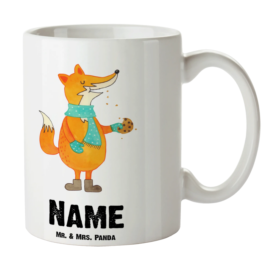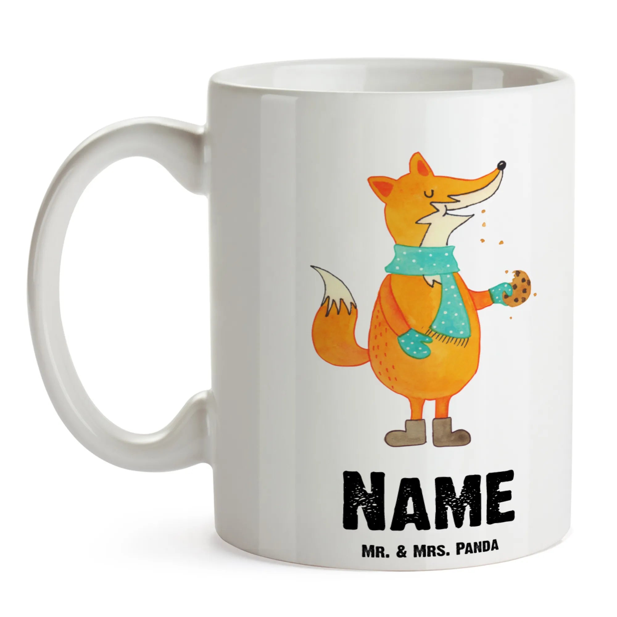 Die personalisierte Tasse Fuchs Keks von Mr. & Mrs. Panda ist das perfekte Geschenk für alle, die Kekse und die gemütliche Winterzeit lieben! Diese wunderschöne Keramiktasse wird mit viel Liebe und Hingabe von Mrs. Panda gestaltet und zeigt einen süßen, fröhlichen Fuchs, der mit einem Keks verführt. Ob du die Tasse für dich selbst behältst oder als liebevolles Geschenk für Freunde und Familie verwendest, sie verbreitet immer gute Laune. Der Spruch "Kekse bestehen aus Butter, Mehl und Liebe!" macht die Tasse zu einem herzlichen Begleiter für gemütliche Kaffeepausen oder das Teetrinken am Abend.