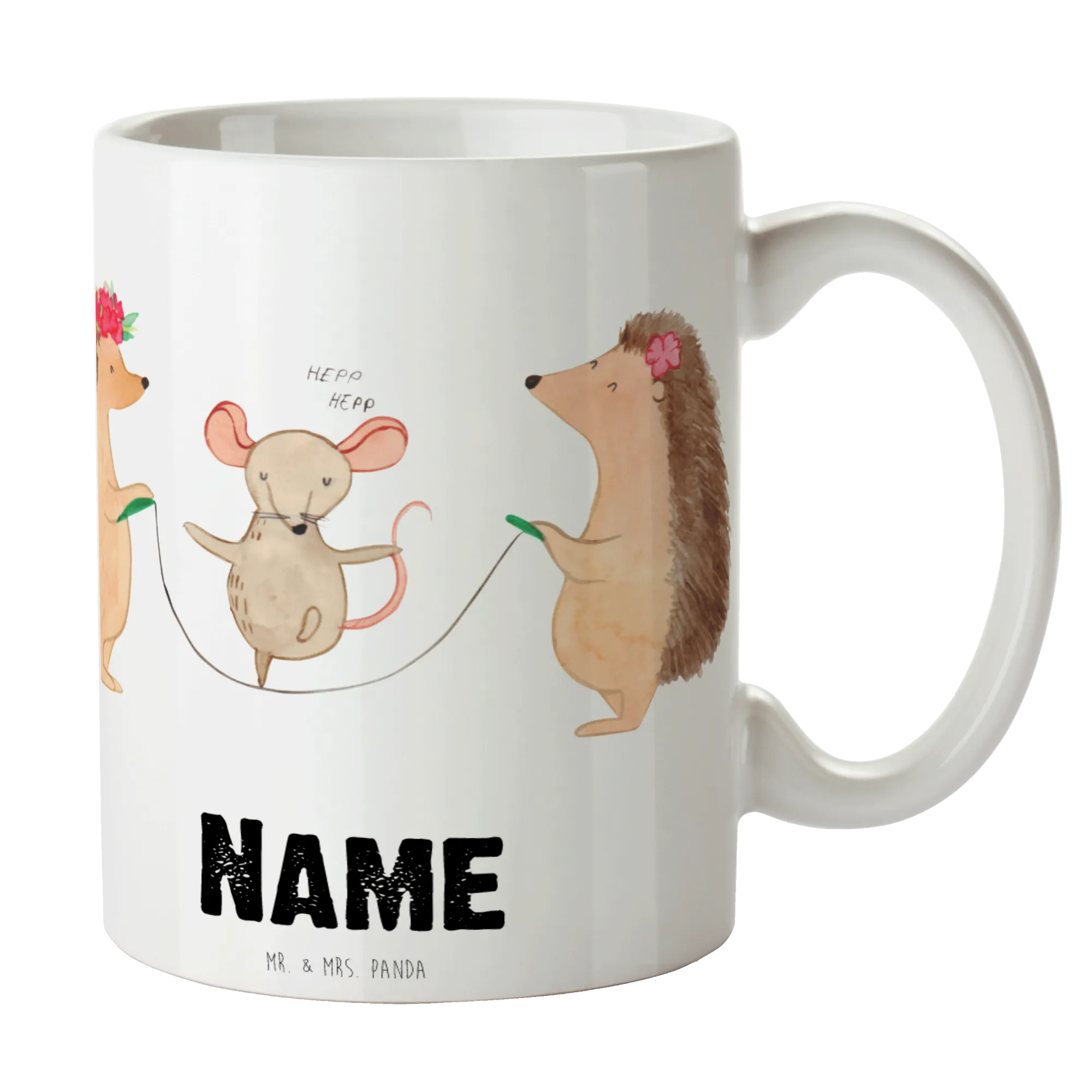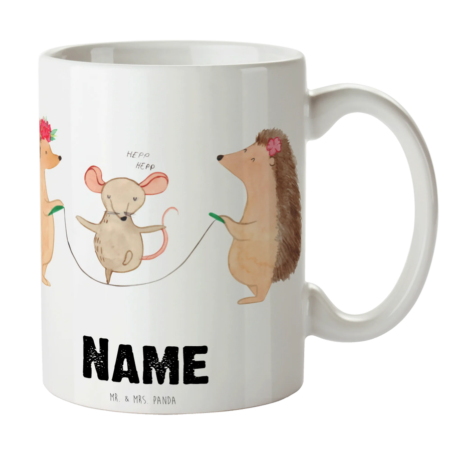 Die personalisierte Tasse 'Igel Seilhüpfen' von Mr. & Mrs. Panda ist das perfekte Geschenk für kleine Abenteurer und Tierliebhaber! 🐾 Diese wunderschöne Tasse aus hochwertiger Keramik bringt nicht nur gute Laune in jeden Morgen, sondern ist auch ein ideales Accessoire für das Kinderzimmer. Mit den fröhlichen Motiven eines hüpfenden Igelpaars und einer lustigen Maus zaubert sie jedem ein Lächeln ins Gesicht.