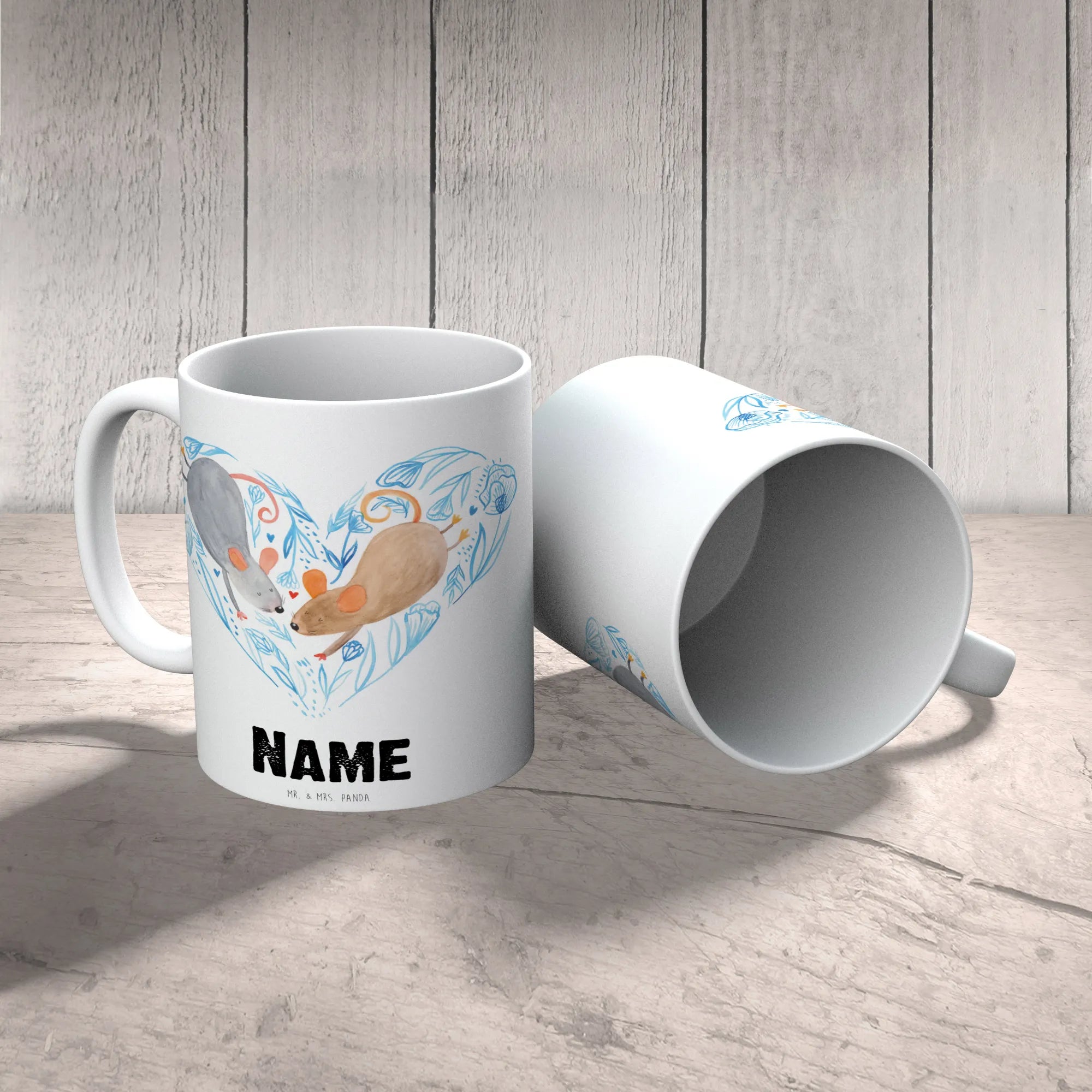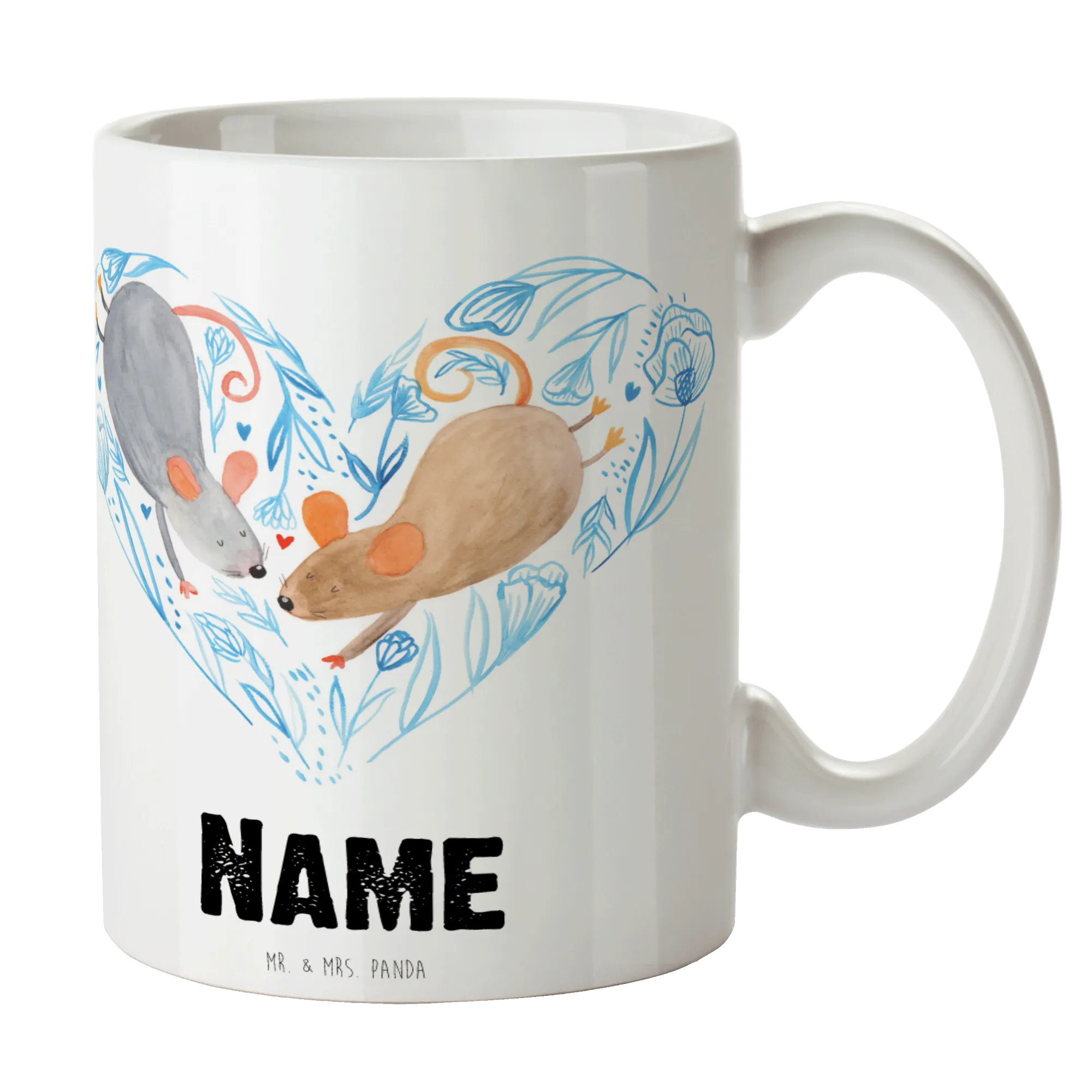 Die personalisierte Tasse Mäuse Herz von Mr. & Mrs. Panda ist das perfekte Geschenk für Verliebte. Ob zum Jahrestag, zur Verlobung oder einfach als Liebesbeweis für deinen Partner – diese zauberhafte Tasse bringt zum Strahlen!