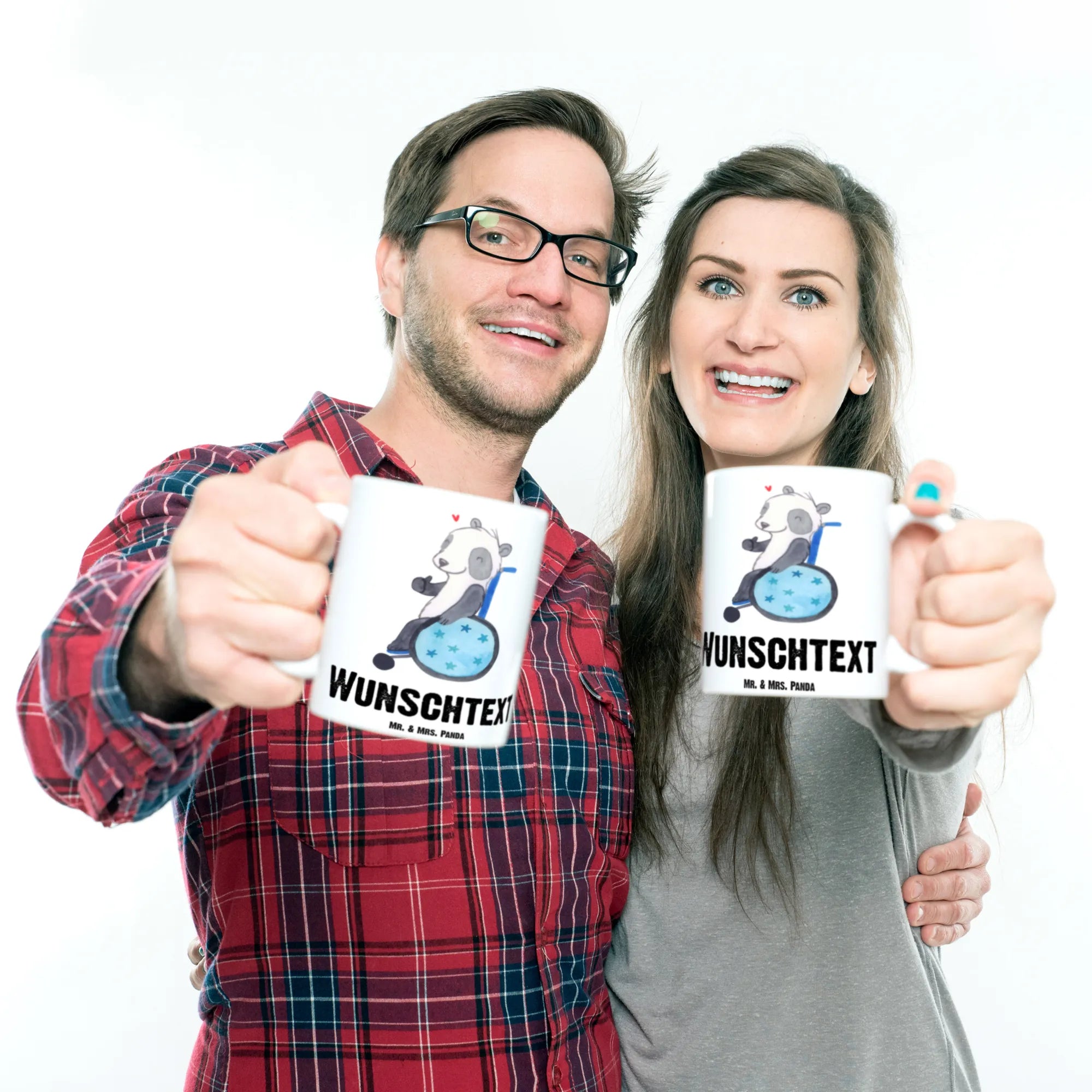 Die personalisierte Tasse mit dem wundervollen Panda im Rollstuhl ist das perfekte Geschenk für jeden, der im Alltag mit einem Handicap kämpft oder einfach eine besondere Tasse möchte, die Mut und Zuversicht ausstrahlt. Dieses liebevoll gestaltete Keramikstück von Mr. & Mrs. Panda ist nicht nur ein schönes Accessoire für den Frühstückstisch, sondern erinnert auch täglich daran, dass Grenzen nur im Kopf existieren. Mit dem motivierenden Spruch „Grenzen existieren nur im Kopf. Nichts hält mich auf meinem Weg auf.“ ist die Tasse ein kraftvoller Begleiter, der jedem Nutzer den Tag versüßt.