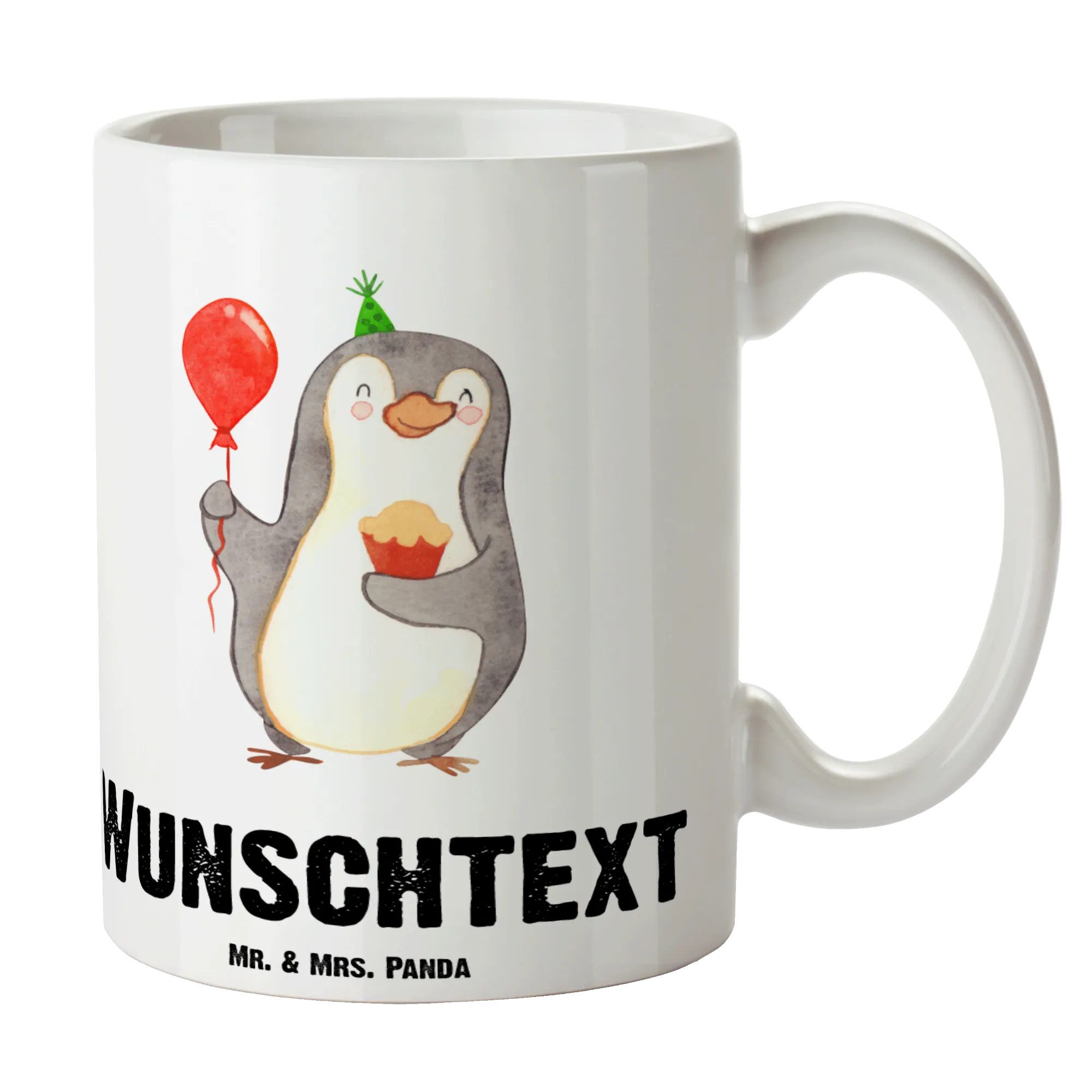 Diese wunderschöne, personalisierbare Keramiktasse von Mr. & Mrs. Panda wird mit deinem Wunschnamen oder Wunschtext brillant bedruckt und ist somit ein einzigartiges Geschenk für Freunde oder Familie. Die Tasse zeigt einen süßen Pinguin mit einem Partyhütchen und einem Luftballon – ideal für alle, die ihren Ehrentag feierlich gestalten möchten!