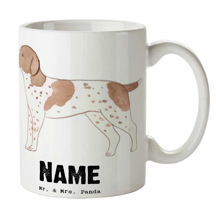 Die personalisierte Tasse "Mein Lebensretter ist ein Pointer" von Mr. & Mrs. Panda ist das perfekte Geschenk für alle Hundeliebhaber und Besitzer der beliebten Pointer-Rasse. Diese Tasse aus hochwertiger Keramik bezaubert mit einem liebevoll gezeichneten Pointer, der in Seitenansicht mit einem eleganten und aufmerksamen Ausdruck dargestellt ist. Der sanfte Braunton und die charakteristischen Flecken machen dieses Design einzigartig und ansprechend.