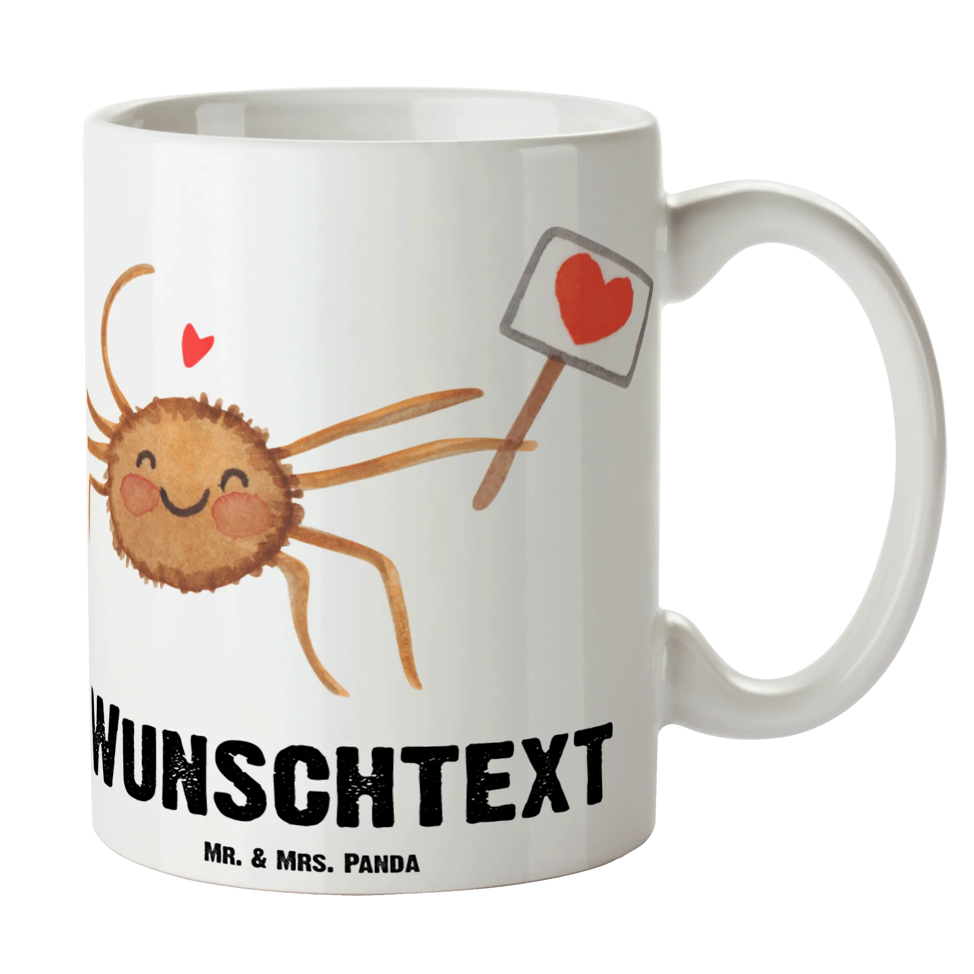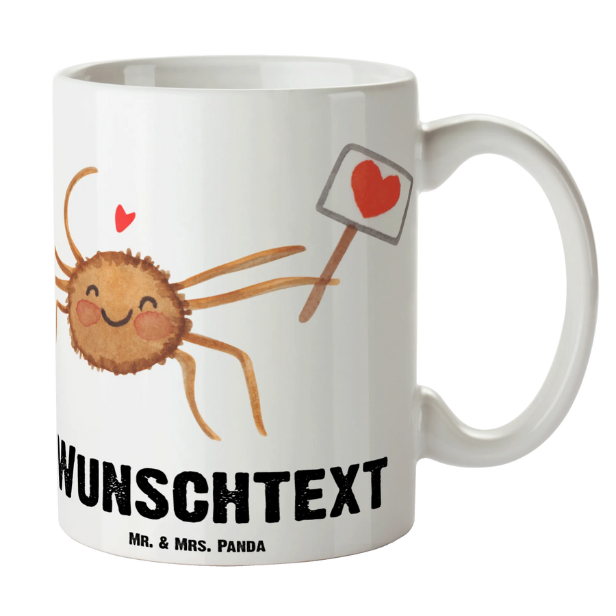 Die personalisierte Tasse Spinne Agathe Motivation von Mr. & Mrs. Panda ist nicht nur ein einfaches Geschirrstück, sondern ein ganz persönliches Geschenk, das Freude und Liebe ausstrahlt! Diese wunderschöne, handgefertigte Keramiktasse lässt sich mit deinem Wunschnamen oder Text personalisieren und verleiht jedem Schluck einen Hauch von Magie. Mit einem liebevoll gestalteten Motiv der fröhlichen Spinne Agathe, die ein Schild mit einem Herzchen hält, bringt sie ein Lächeln auf die Lippen.