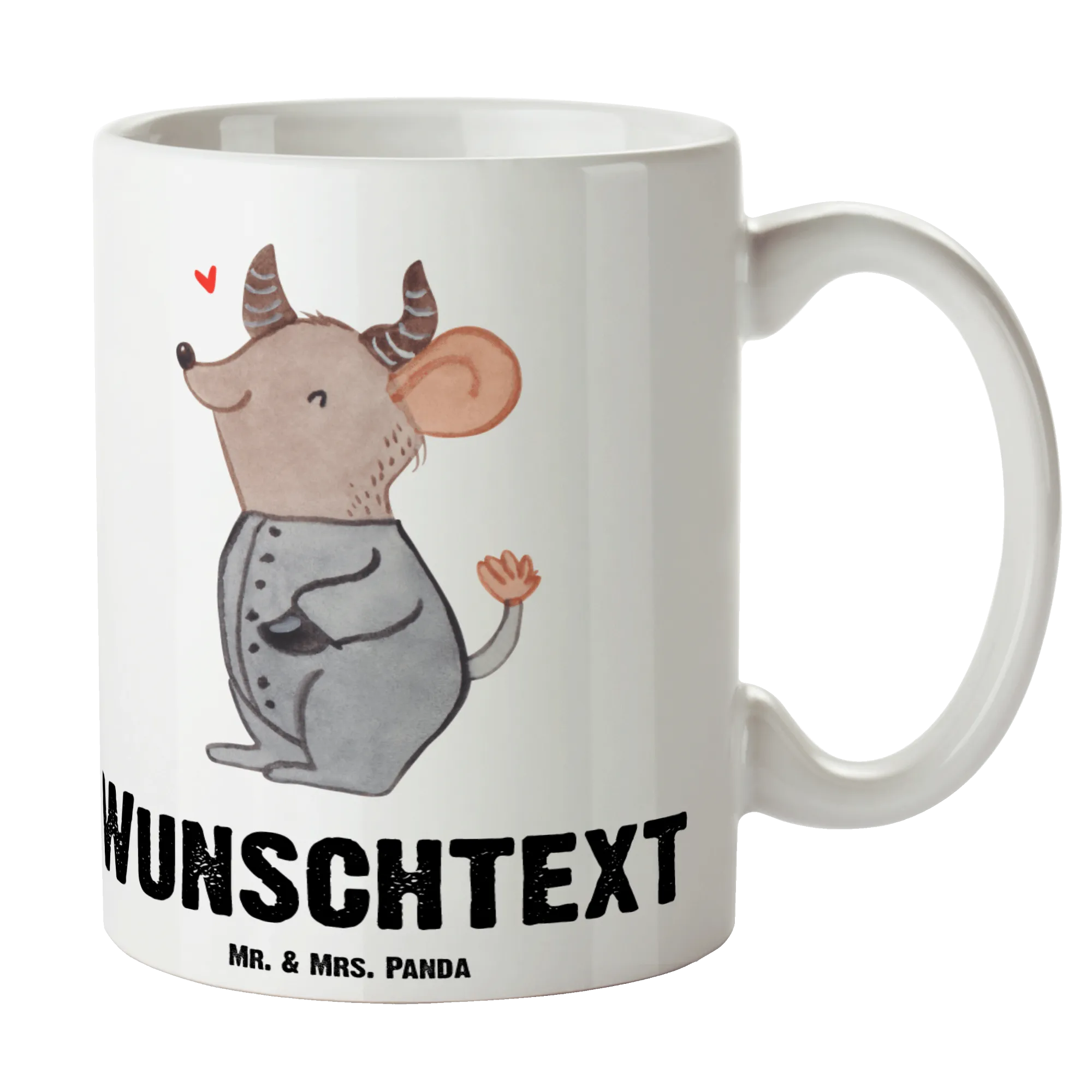 Entdecke die perfekte Kombination aus Persönlichkeit und Stil mit unserer personalisierten Tasse mit Stier-Motiv aus der wunderbaren Sternzeichen-Kollektion von Mr. & Mrs. Panda! Diese einzigartige Keramiktasse, die mit einem fröhlichen Design der anthropomorphen Maus im Stier-Outfit verziert ist, wird garantiert das Herz eines jeden Stier-Liebhabers höher schlagen lassen. Mit dem Motto "Unter dem Zeichen des Stiers: Praktisch, zuverlässig, unvergesslich" bringst du ein Stück Astrologie in den Alltag deiner Liebsten.