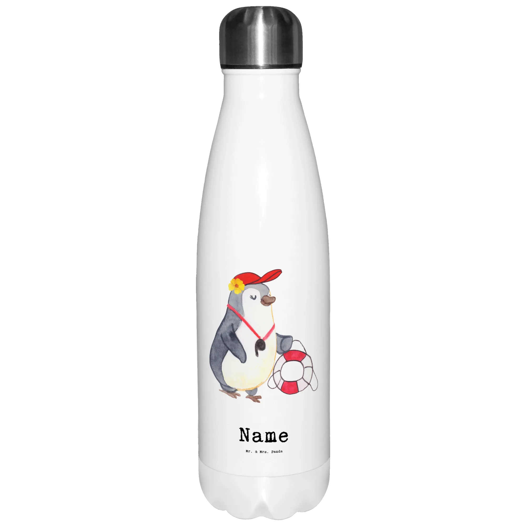 Die personalisierte Thermosflasche „Bademeisterin mit Herz“ von Mr. & Mrs. Panda ist das perfekte Geschenk für alle, die mit Leidenschaft am Beckenrand stehen! Ob Schwimmmeisterin, Rettungsschwimmerin oder einfach nur eine Bademeisterin aus Überzeugung – diese Flasche begleitet dich durch den abwechslungsreichen Alltag und sorgt dafür, dass deine Getränke immer die perfekte Temperatur haben.