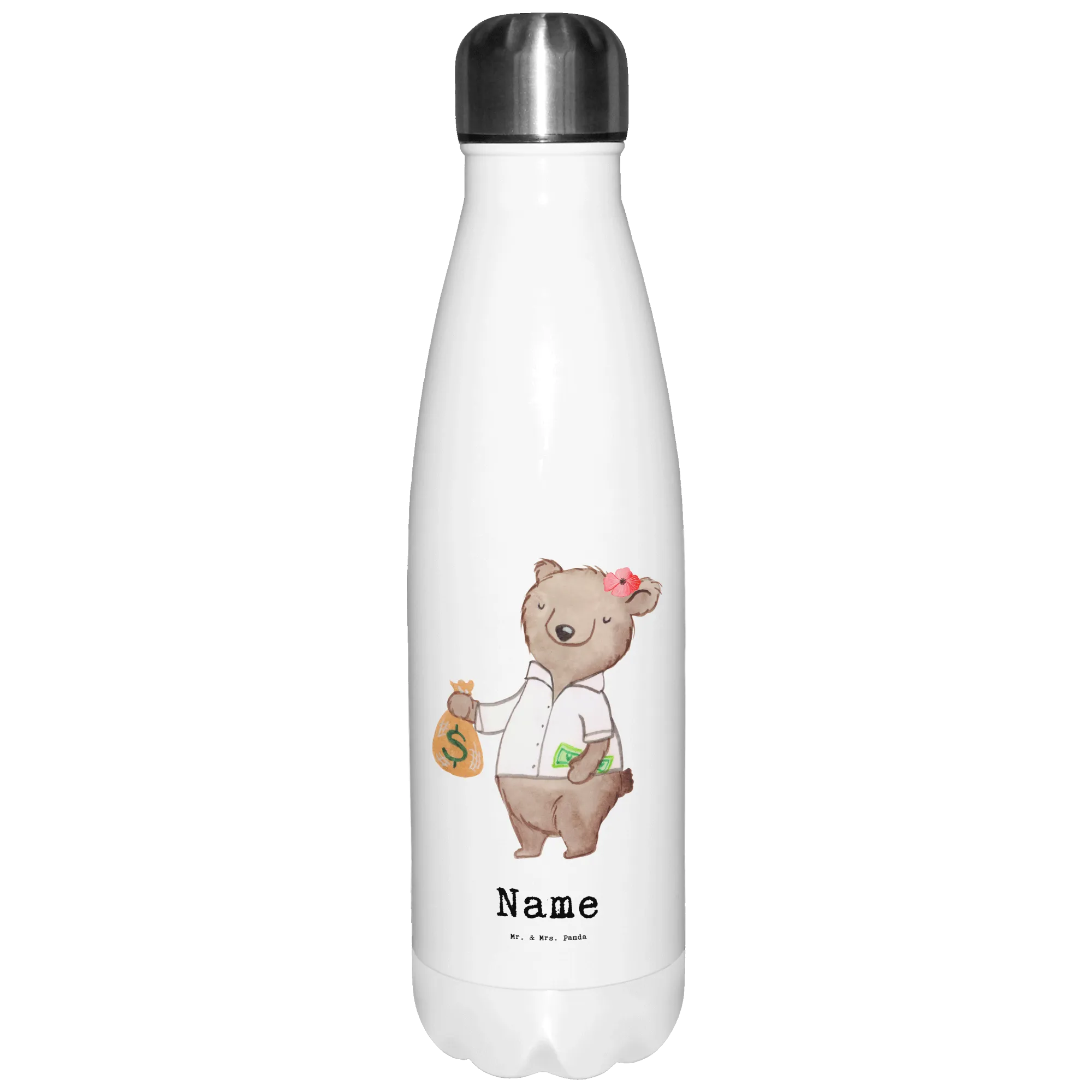 Die personalisierte Thermosflasche "Bänkerin mit Herz" ist das ideale Geschenk für alle Bankangestellten, Bankberaterinnen und die, die es werden wollen. Mit einem süßen Motiv, das eine weibliche Bärin mit einem Geldsack zeigt, vermittelt diese Flasche nicht nur Stil, sondern auch eine Botschaft: "Du bist nur ein halber Mensch, wenn du keine Bänkerin bist."