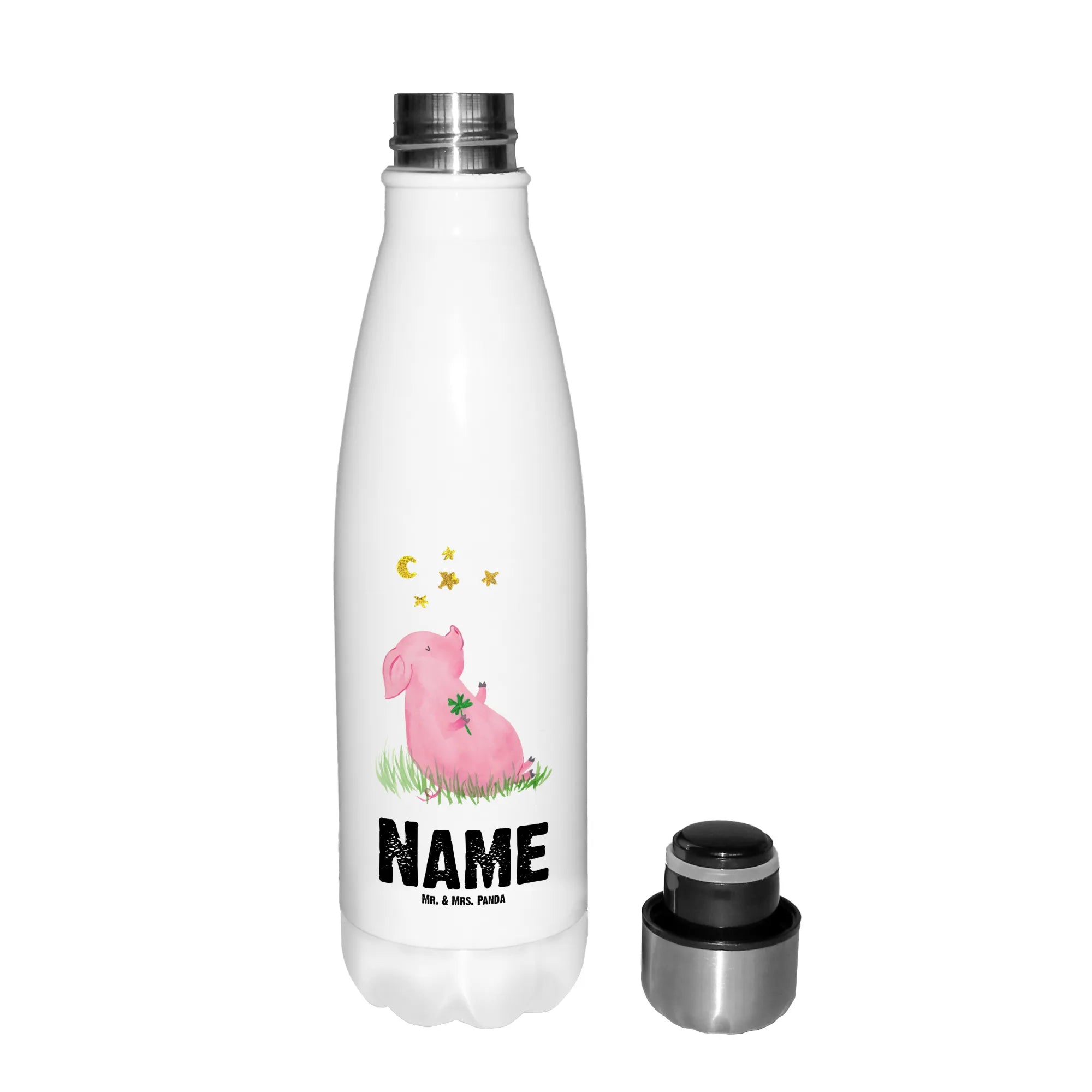 Entdecke die perfekte persönliche Note mit unserer einzigartigen personalisierten Thermosflasche Glücksschwein aus der Small World Kollektion von Mr. & Mrs. Panda! Diese doppelwandige Edelstahlflasche ist nicht nur funktional, sondern bringt auch Freude in deinen Alltag.