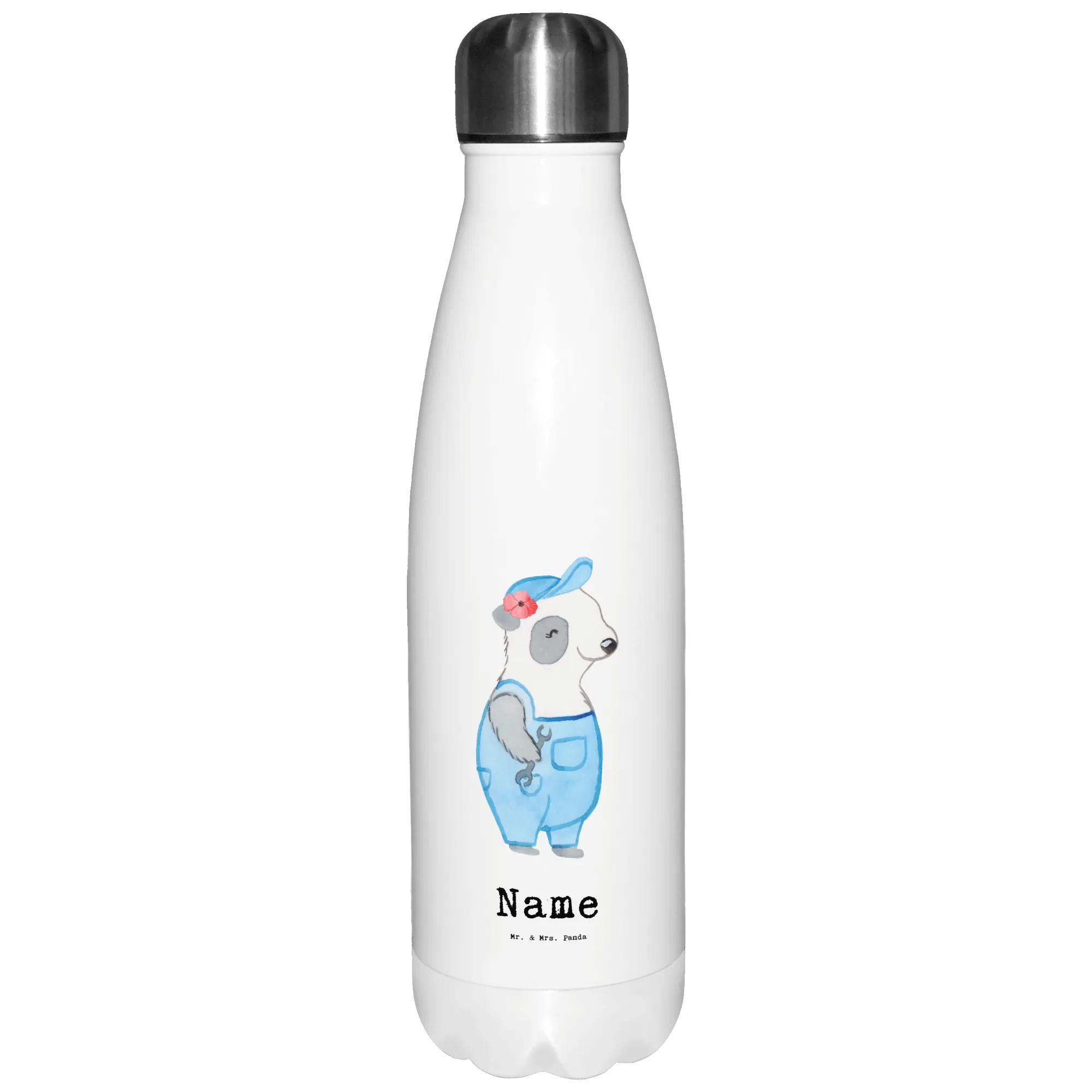 Die personalisierte Thermosflasche "Handwerkerin mit Herz" von Mr. & Mrs. Panda ist das perfekte Geschenk für alle Handwerkerinnen. Ob zum Abschluss der Gesellenprüfung, zum Jubiläum im Handwerksbetrieb oder als ein liebevolles Dankeschön für eine Kollegin - diese Flasche ist immer eine hervorragende Wahl! Der hübsche Panda in einem Blaumann bringt ein Lächeln auf die Lippen und erinnert daran, dass Handwerker immer einen Spruch auf den Lippen haben sollten.