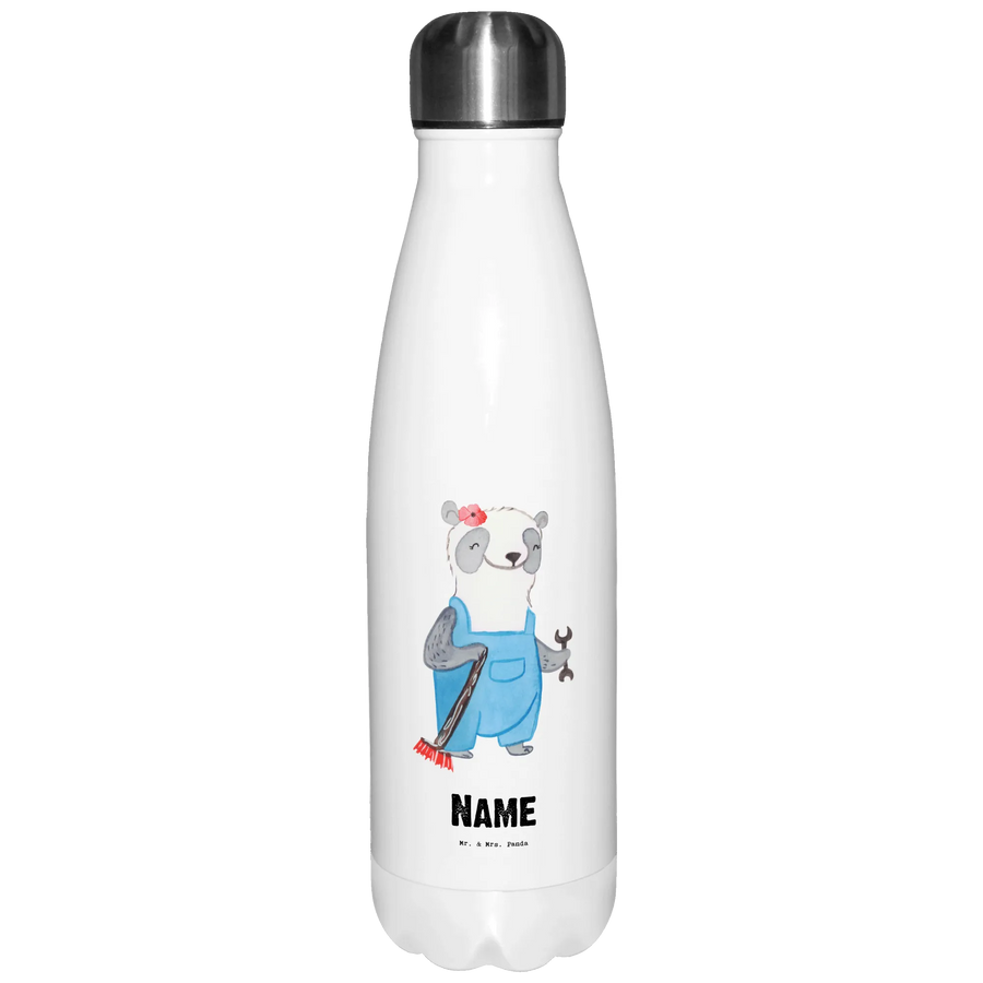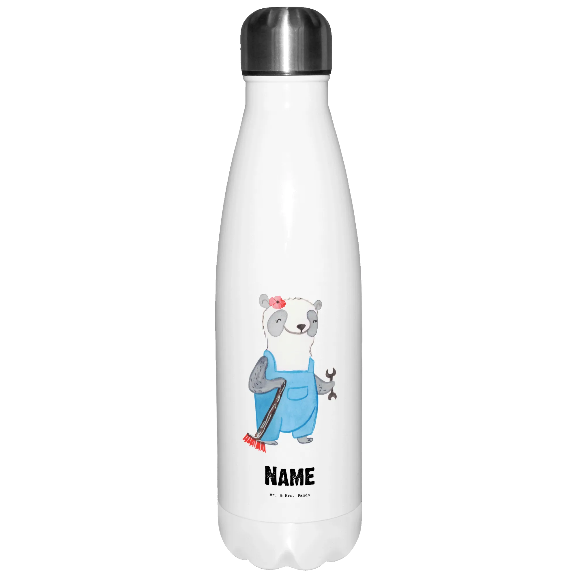 Die süße Pandadame mit Besen symbolisiert die Leidenschaft zu ihrem Beruf, und das handgezeichnete Motiv macht jede Flasche einzigartig. Du kannst sie individuell mit einem Wunschnamen oder Wunschtext versehen lassen, was sie zu einem ganz persönlichen Geschenk macht. Diese personalisierte Trinkflasche ist nicht spülmaschinenfest, aber durch die sanfte Handwäsche bleibt sie lange schön und hygienisch.