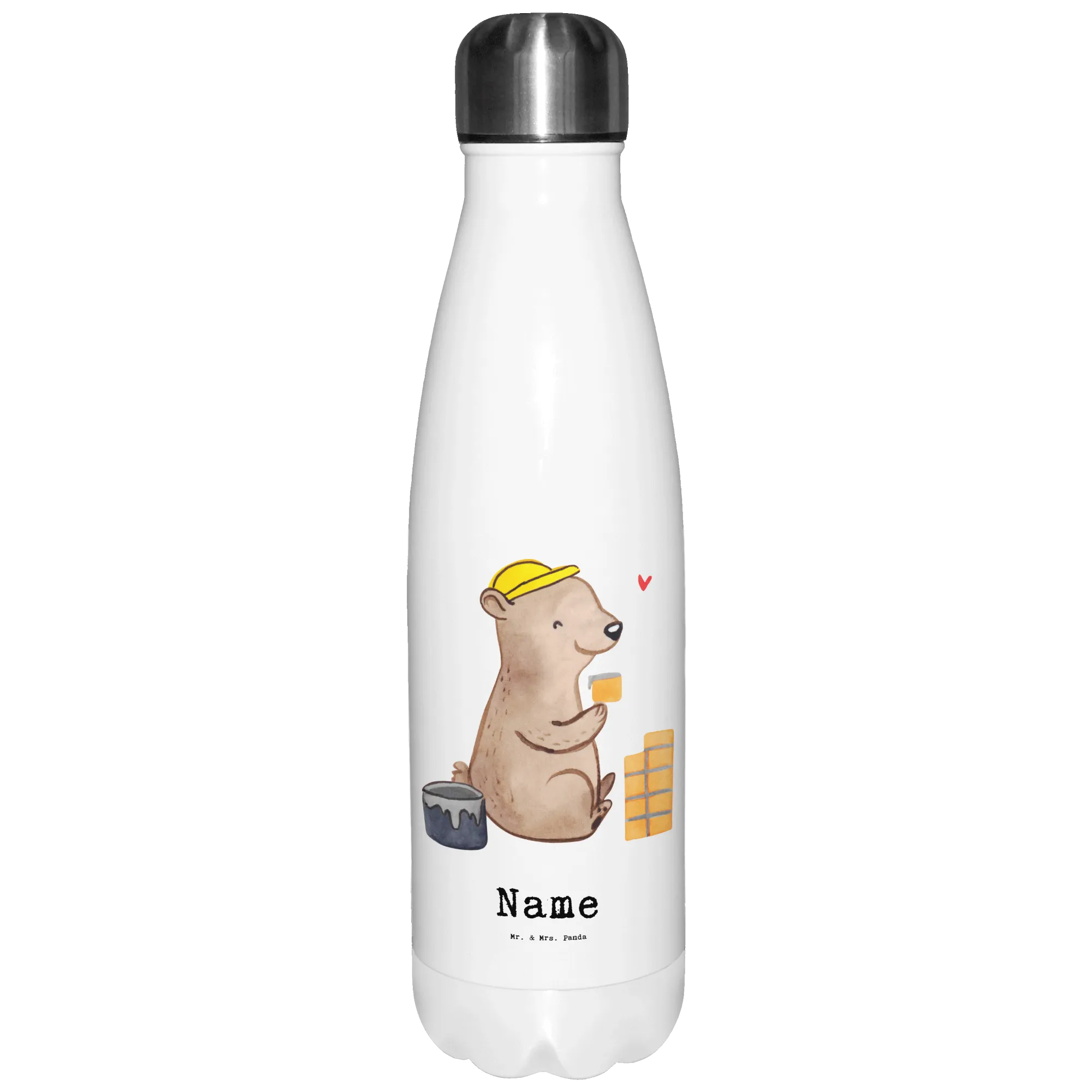 Wenn du auf der Suche nach einem ganz besonderen Geschenk für einen Maurer bist, dann ist die personalisierte Thermosflasche mit dem Motiv Maurer mit Herz aus der kreativen Berufe-Kollektion von Mr. & Mrs. Panda genau das Richtige! Diese einzigartige Thermosflasche ist mehr als nur ein praktisches Trinkgefäß. Sie ist ein Ausdruck von Wertschätzung und Anerkennung für die harte Arbeit, die Maurer tagtäglich leisten. Mit einem Wunschnamen kannst du die Flasche ganz persönlich gestalten. Ob als Abschiedsgeschenk, zur Gesellenprüfung oder zum Jubiläum – diese Flasche wird garantiert für strahlende Gesichter sorgen!