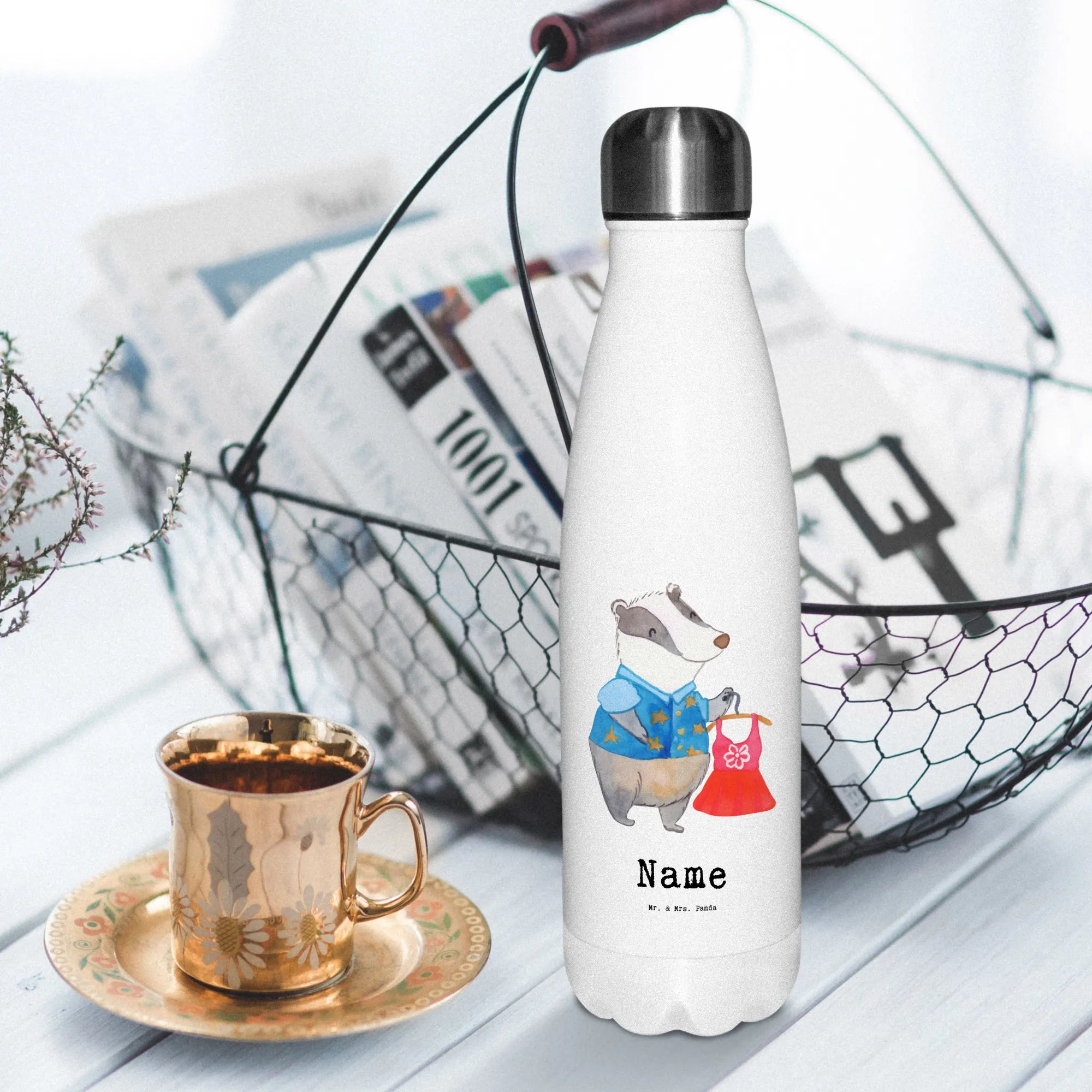 Die personalisierte Thermosflasche von Mr. & Mrs. Panda ist genau das, was du brauchst, um unterwegs immer bestens versorgt zu sein! Sie misst in der Höhe 270 mm, hat einen Durchmesser von 70 mm und ein Füllvolumen von 500 ml – ideal für deinen Kaffee, Tee oder einfach Wasser. Ihr doppelwandiger Edelstahl sorgt dafür, dass deine Getränke stets die ideale Temperatur behalten, egal ob du sie heiß oder kalt genießt. Diese Flasche ist super leicht und praktisch, perfekt für Den Alltag, beim Sport oder auf Ausflügen. Sie kommt mit einem praktisch verschließbaren Schraubverschluss, der sicherstellt, dass nichts ausläuft. Bitte beachte, dass sie nicht spülmaschinenfest ist und sanfte Handwäsche empfohlen wird. Mit der Möglichkeit der Personalisierung wird sie zu einem ganz besonderen Geschenk, das du oder deine Freunde sicher lieben werden.