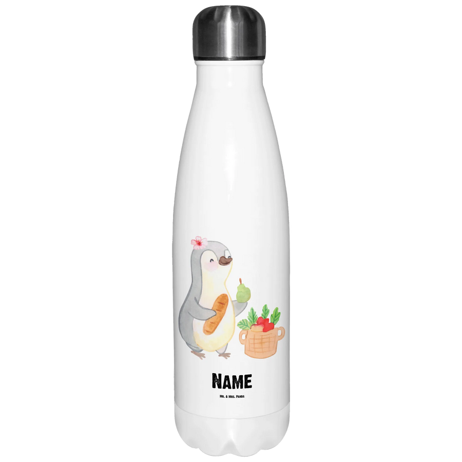 Entdecke die personalisierte Thermosflasche Obsthändlerin mit Herz von Mr. & Mrs. Panda! Dieses einzigartige Accessoire ist nicht nur ein praktischer Begleiter für alle, die gerne gesunde Getränke mit auf den Weg nehmen, sondern auch eine liebevolle Hommage an alle Obstverkäuferinnen und -verkäufer da draußen.