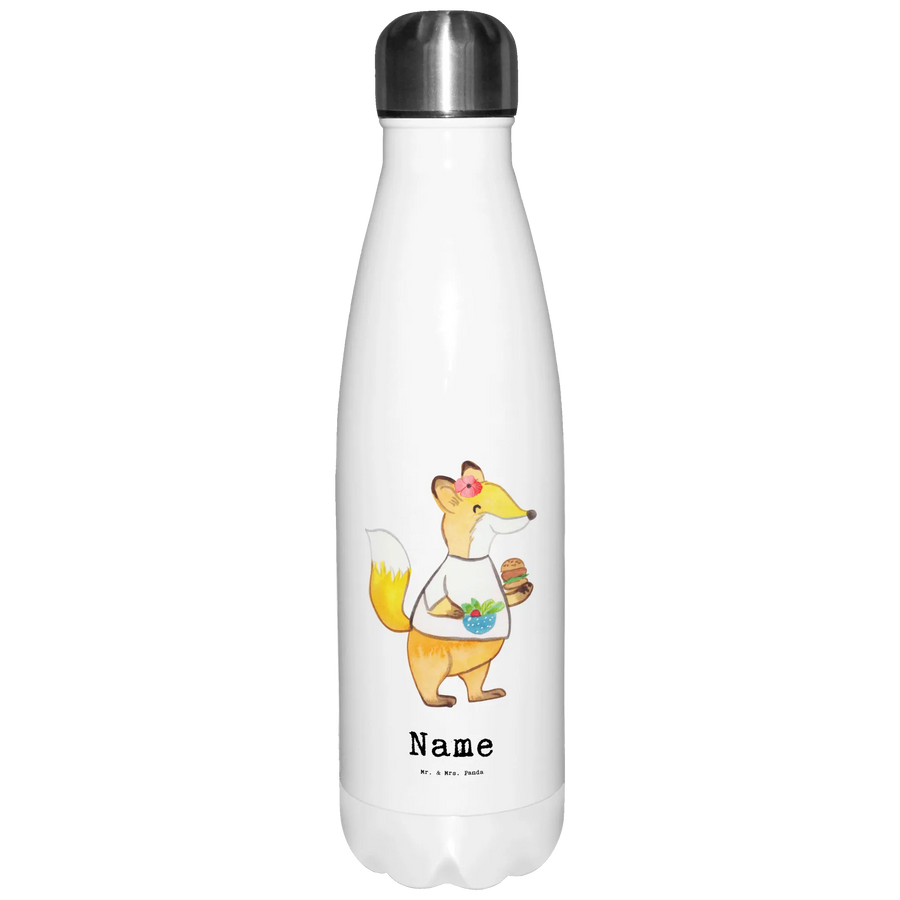Die Flasche ist nicht nur funktional, sondern auch stylisch. Das süße Motiv mit dem weiblichen Fuchs, der ein leckeres Burger-T-Shirt trägt, ist ein echter Hingucker. Jedes Design wurde mit viel Liebe von Mrs. Panda handgezeichnet und gibt der Flasche einen einzigartigen Charme.