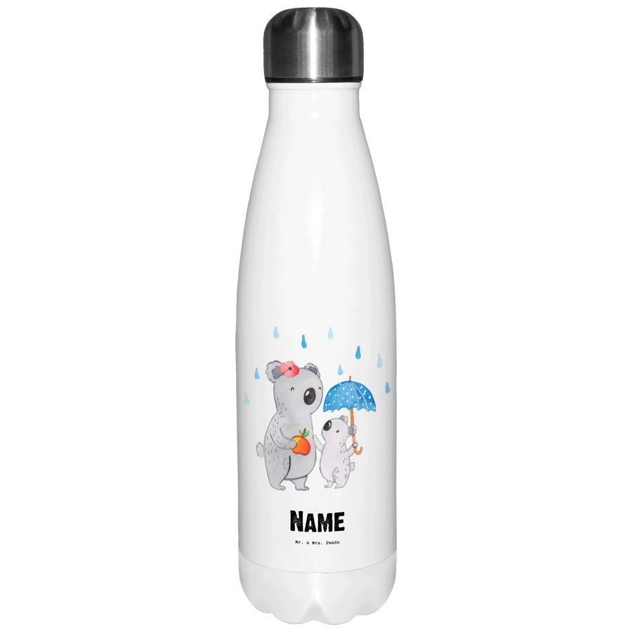 Das niedliche Motiv zeigt eine fürsorgliche Koala-Mutter mit ihrem kleinen Koala, die unter einem Regenschirm steht, und vermittelt damit ein warmes Gefühl von Geborgenheit und Zuneigung. Zudem macht der Spruch "Du bist nur ein halber Mensch, wenn du keine Tagesmutter bist" die Flasche zu einem ganz besonderen Geschenk.