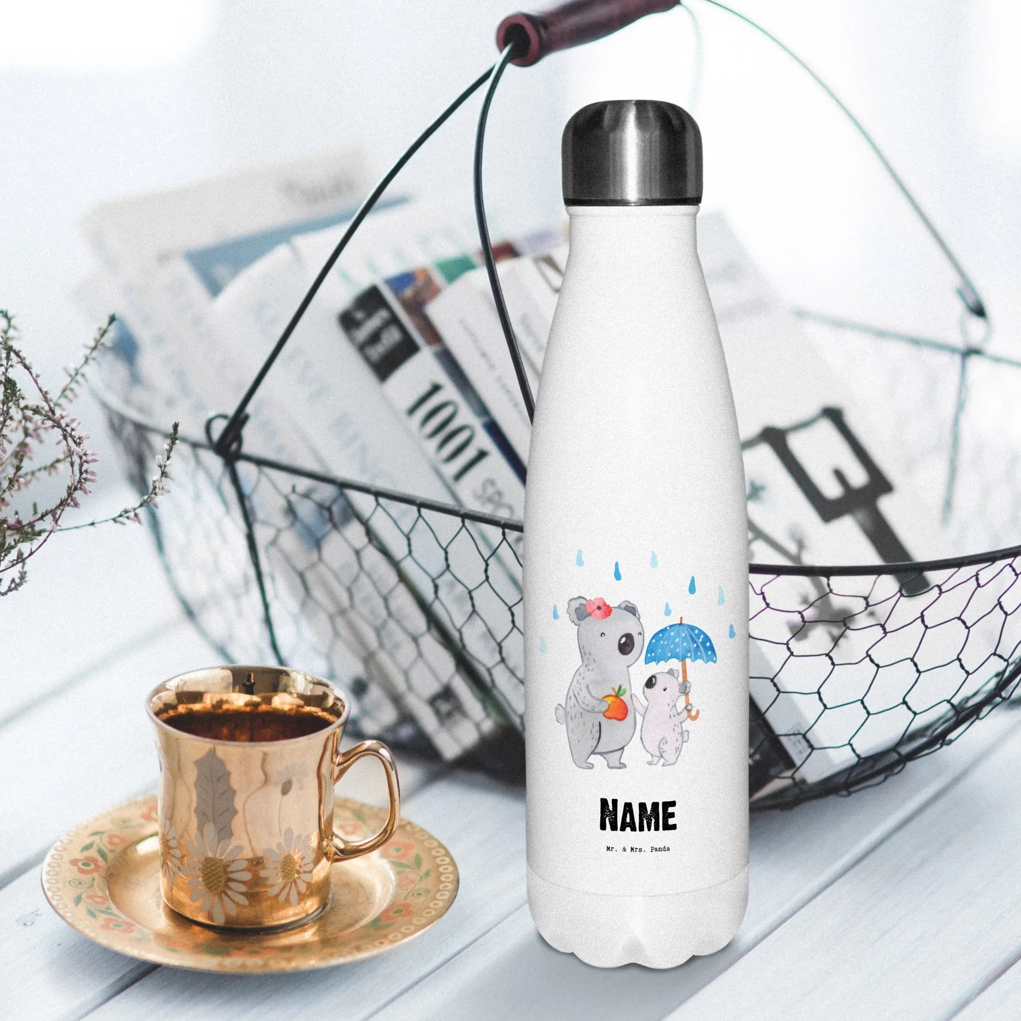 Genieße deine Getränke mit Stil – mit der personalisierten Thermosflasche von Mr. & Mrs. Panda. Diese Flasche hat eine Höhe von 270 mm und einen Durchmesser von 70 mm, ideal für 500 ml deiner Lieblingsgetränke. Ob für Kaffee, Tee oder auch kalte Erfrischungsgetränke, diese Flasche ist die perfekte Wahl. Der doppelwandige Edelstahl sorgt dafür, dass deine Getränke immer die perfekte Temperatur haben. Leicht und robust, ist sie perfekt für Abenteuer im Freien und den Alltag. Ihr praktischer Schraubverschluss macht das Trinken einfach und verhindert ungewolltes Auslaufen. Pflege sie am besten per Hand, da sie nicht spülmaschinenfest ist. Mit der Möglichkeit zur Personalisierung wird jede Flasche zu einem individuellen Geschenk für Freunde, Familie oder dich selbst – einzigartig und besonders.